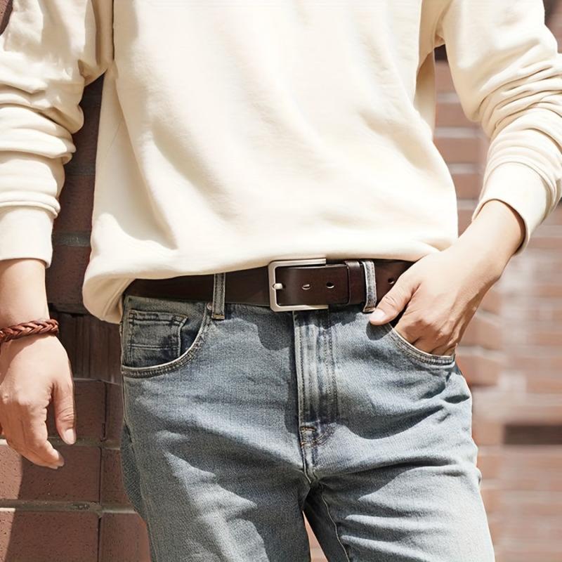 Add a touch of vintage flair to your outfit with this faux leather belt. Perfect for casual wear with jeans, this belt features a pin buckle and is ideal for young men.