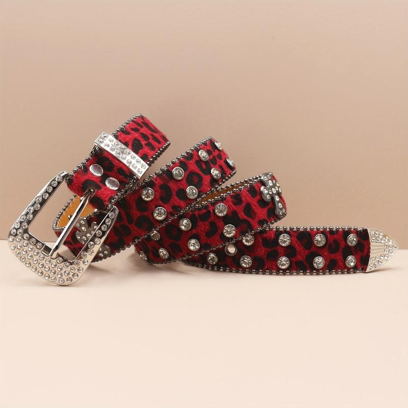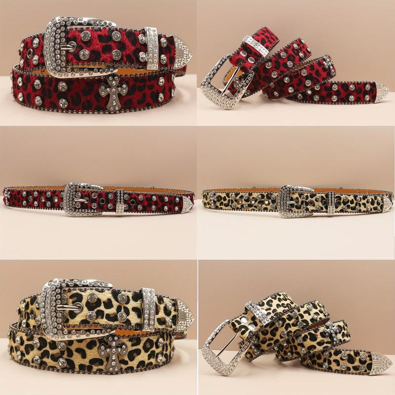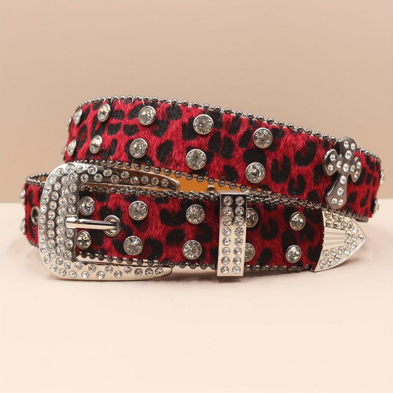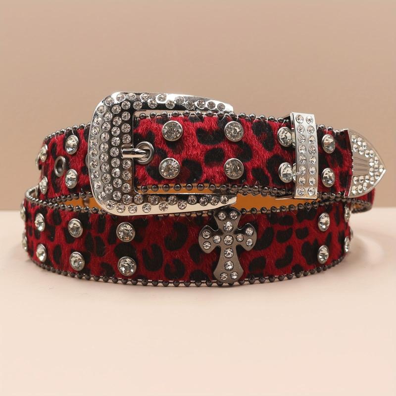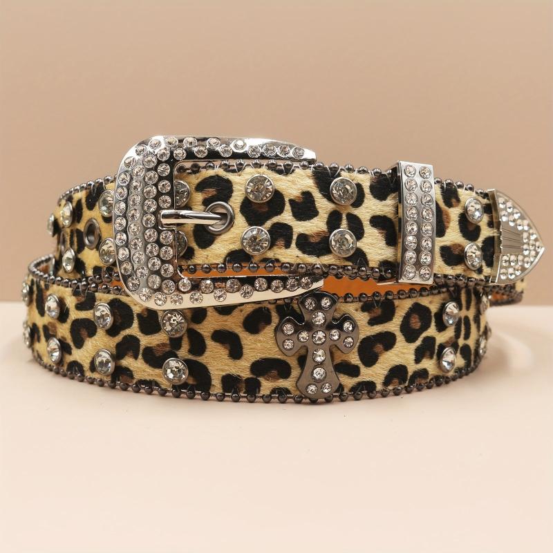 Add a touch of punk style to your outfit with this men's rhinestone belt featuring a cross design and leopard print. Made of faux leather, this belt is perfect for adding a unique edge to your look.
