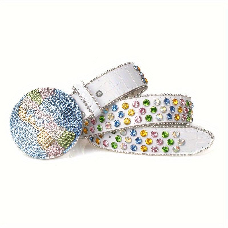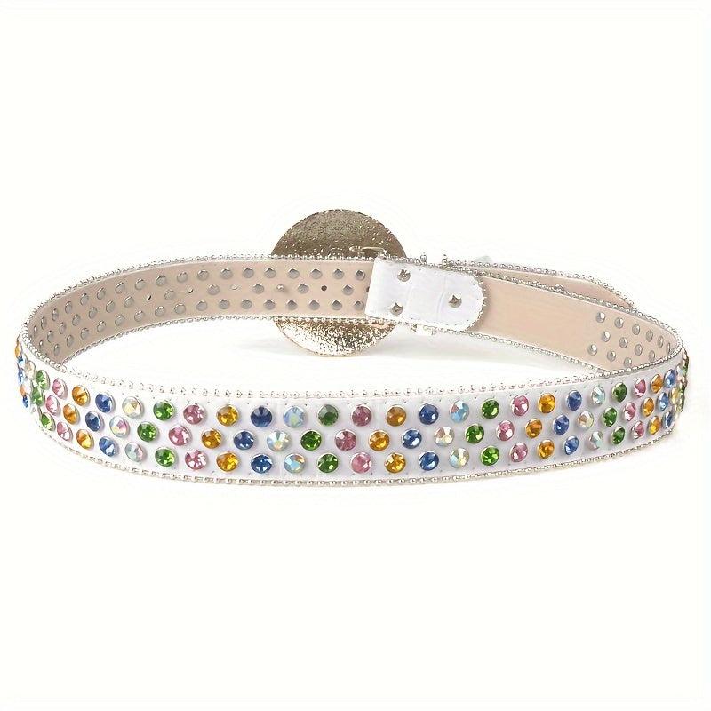 This hip hop wide belt features sparkling multicolor sequins and a metal buckle. Made of faux leather, it's adjustable for a perfect fit, ideal for casual attire.