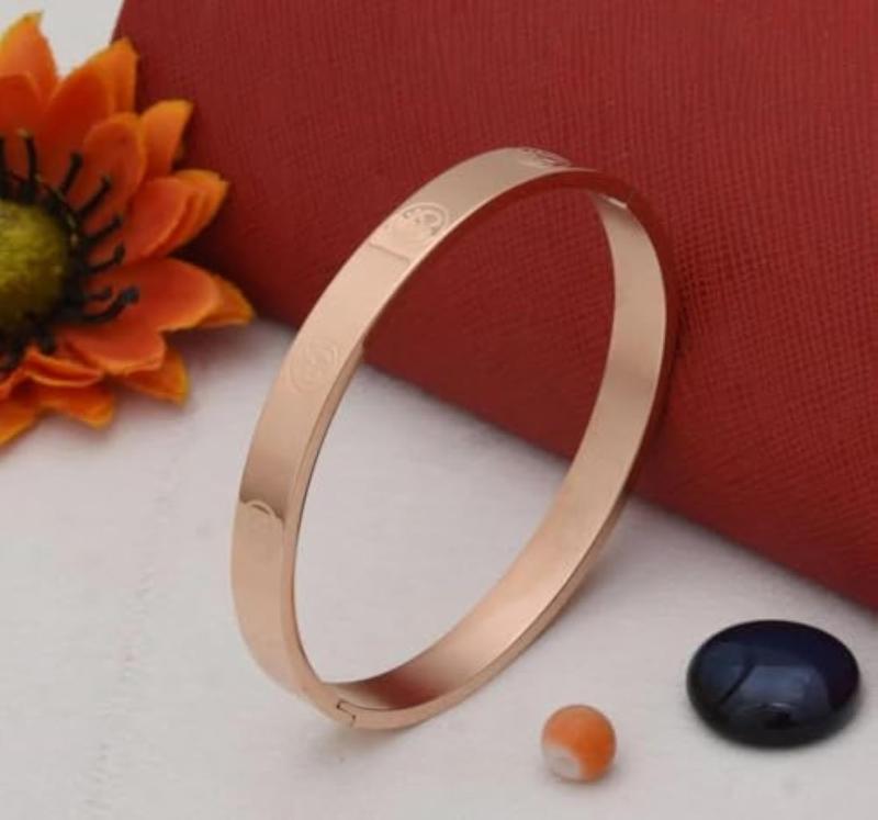 Stay stylish with this waterproof and durable rose kada bracelet featuring the Aum Om symbol. Made of high-quality stainless steel.