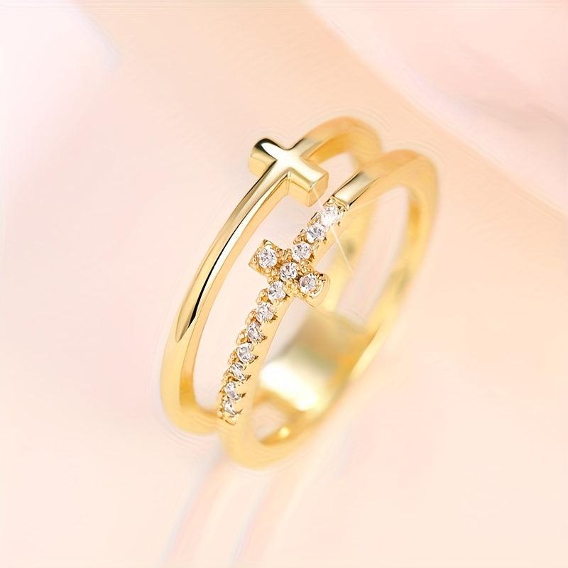 This synthetic zirconia ring is a perfect accessory for casual parties or special occasions. It features a minimalist double cross design that adds a touch of elegance to any outfit.