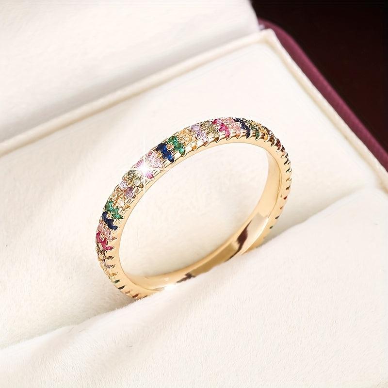 Elegant geometric ring with synthetic zirconia stones, perfect for daily wear or gifting occasions.