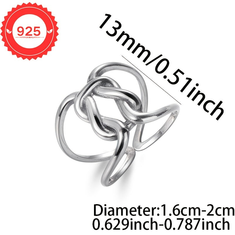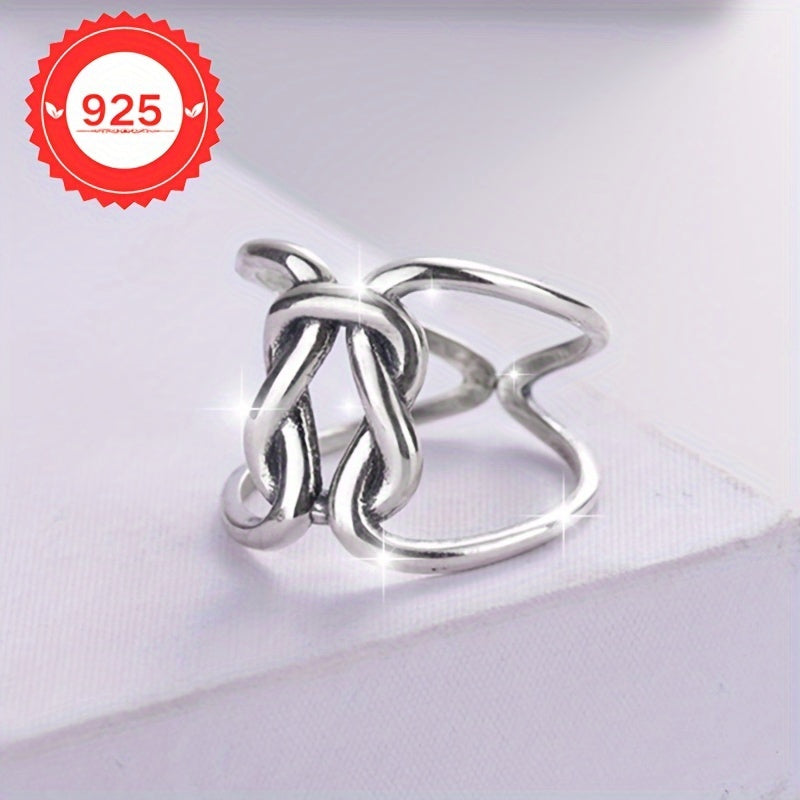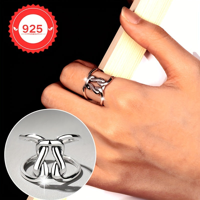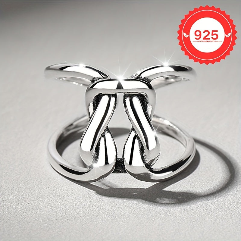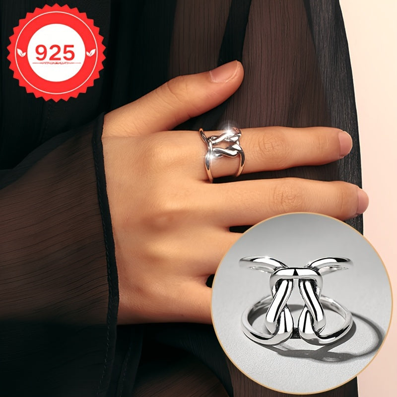 This S925 silver ring showcases a minimalist hollow line with a twisted knot design, embodying hip and fashionable style. It's the perfect gift for any occasion.