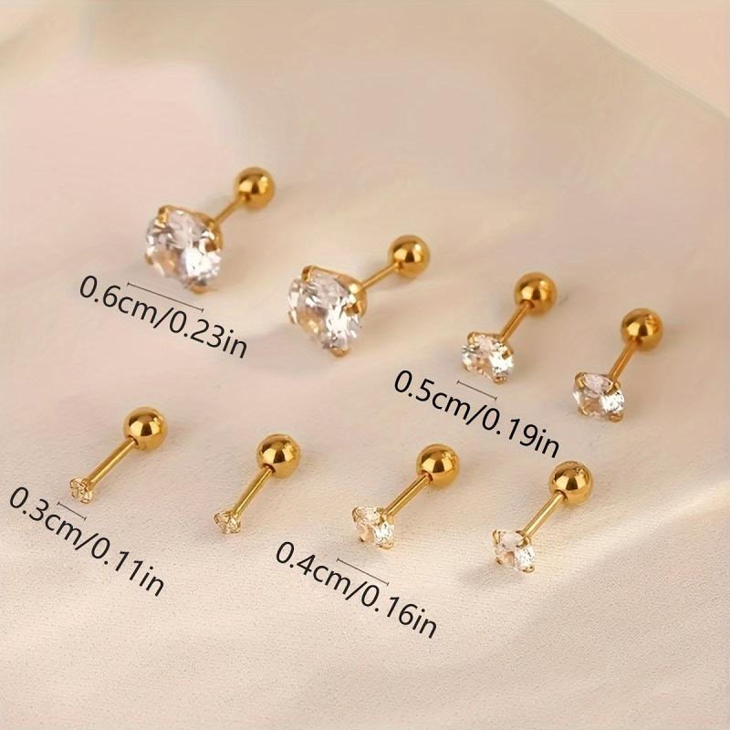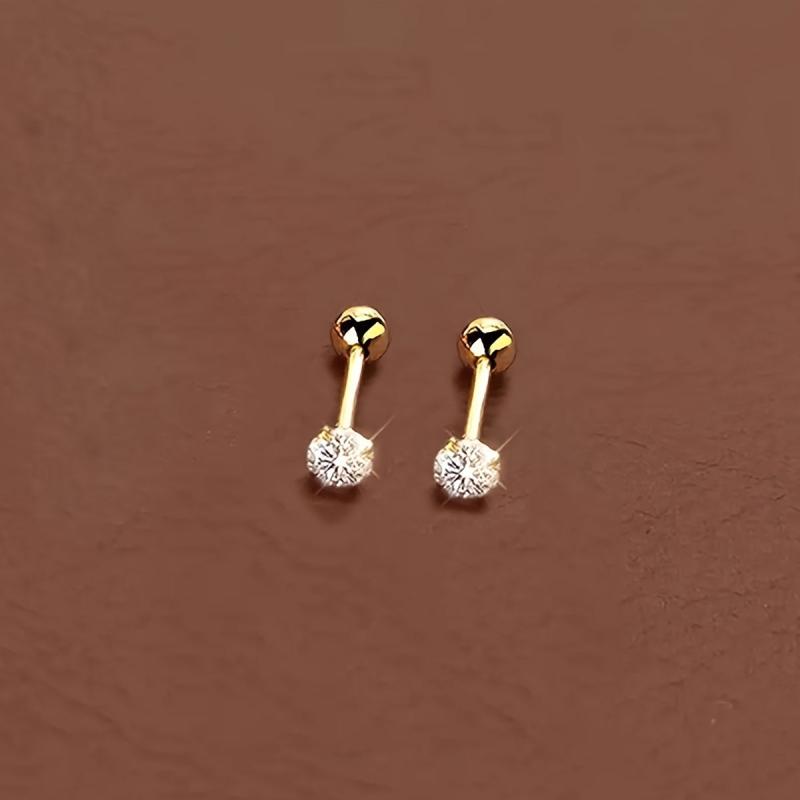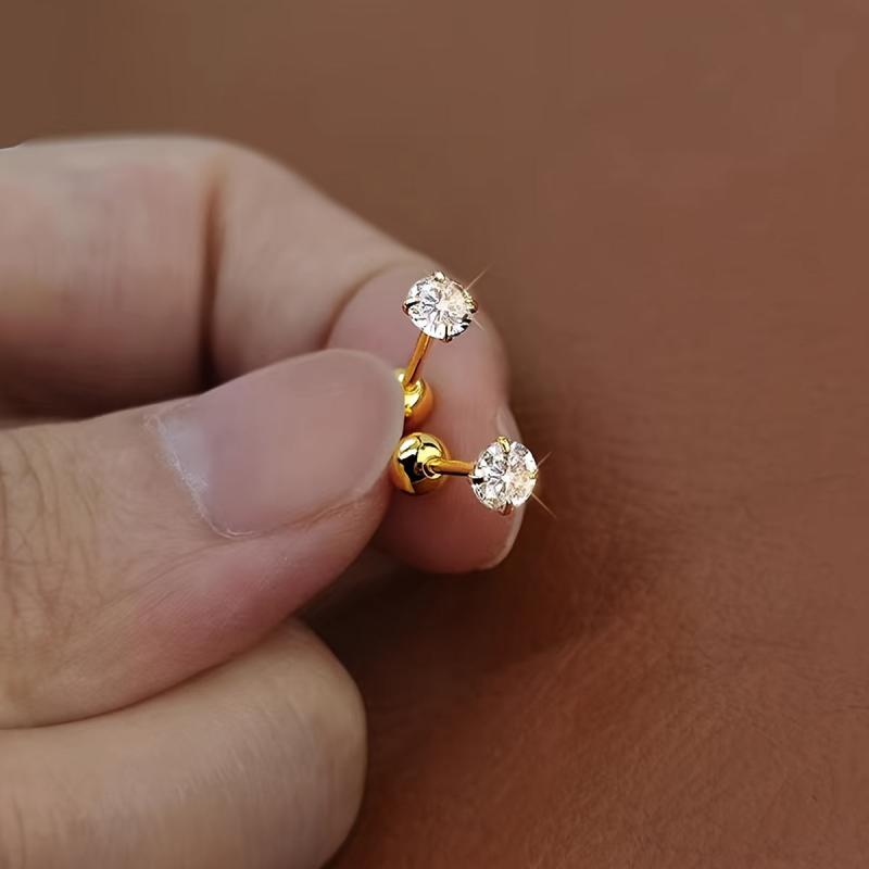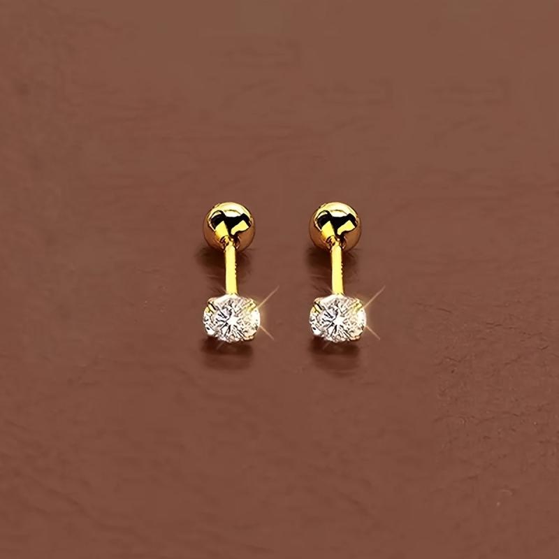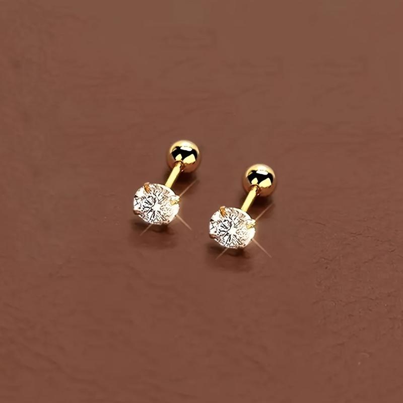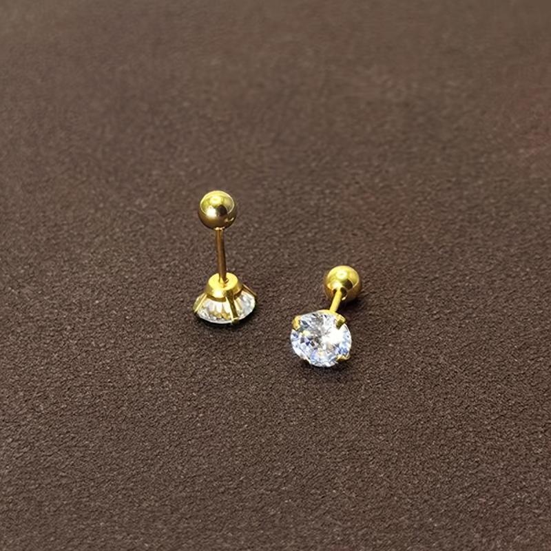 These elegant stud earrings feature a round cubic zirconia stone set in a golden four claw twisted design. Made of high-quality stainless steel, they are perfect for everyday wear or special occasions.