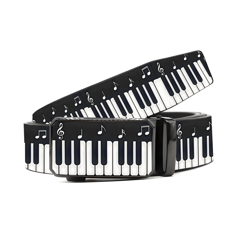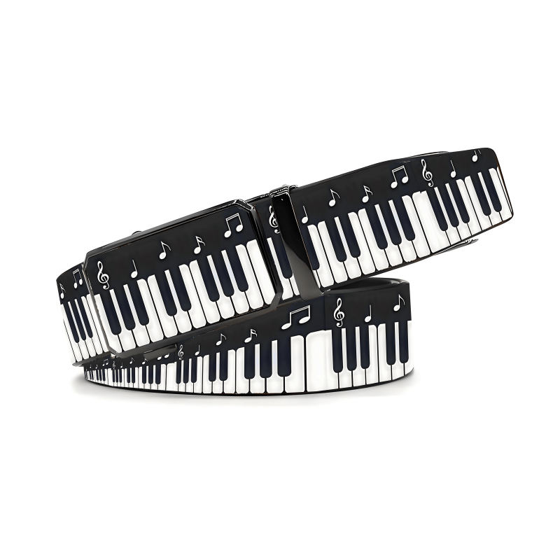 This large size modern automatic belt features a piano and musical notes sparkling alloy buckle with faux leather material. Perfect for men and women, ideal for daily wear, beach outings, and holidays.