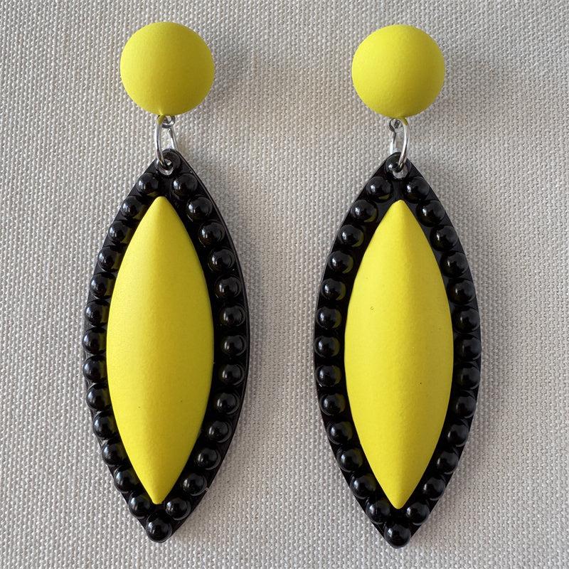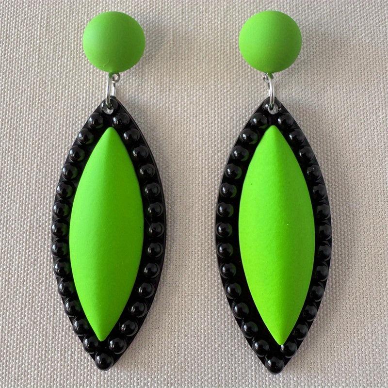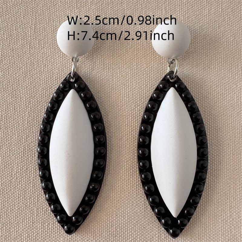 Atmospheric pair of modern style plastic pendant earrings that are suitable for various occasions. Instantly elevate your look with these versatile earrings.