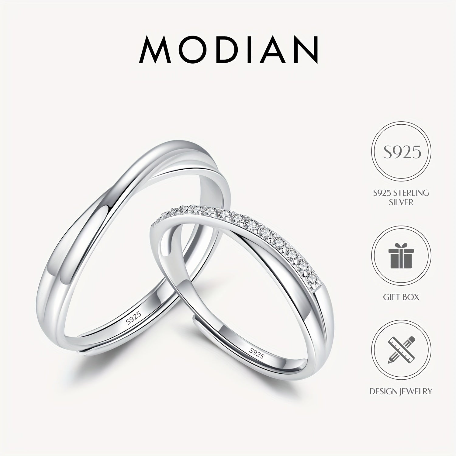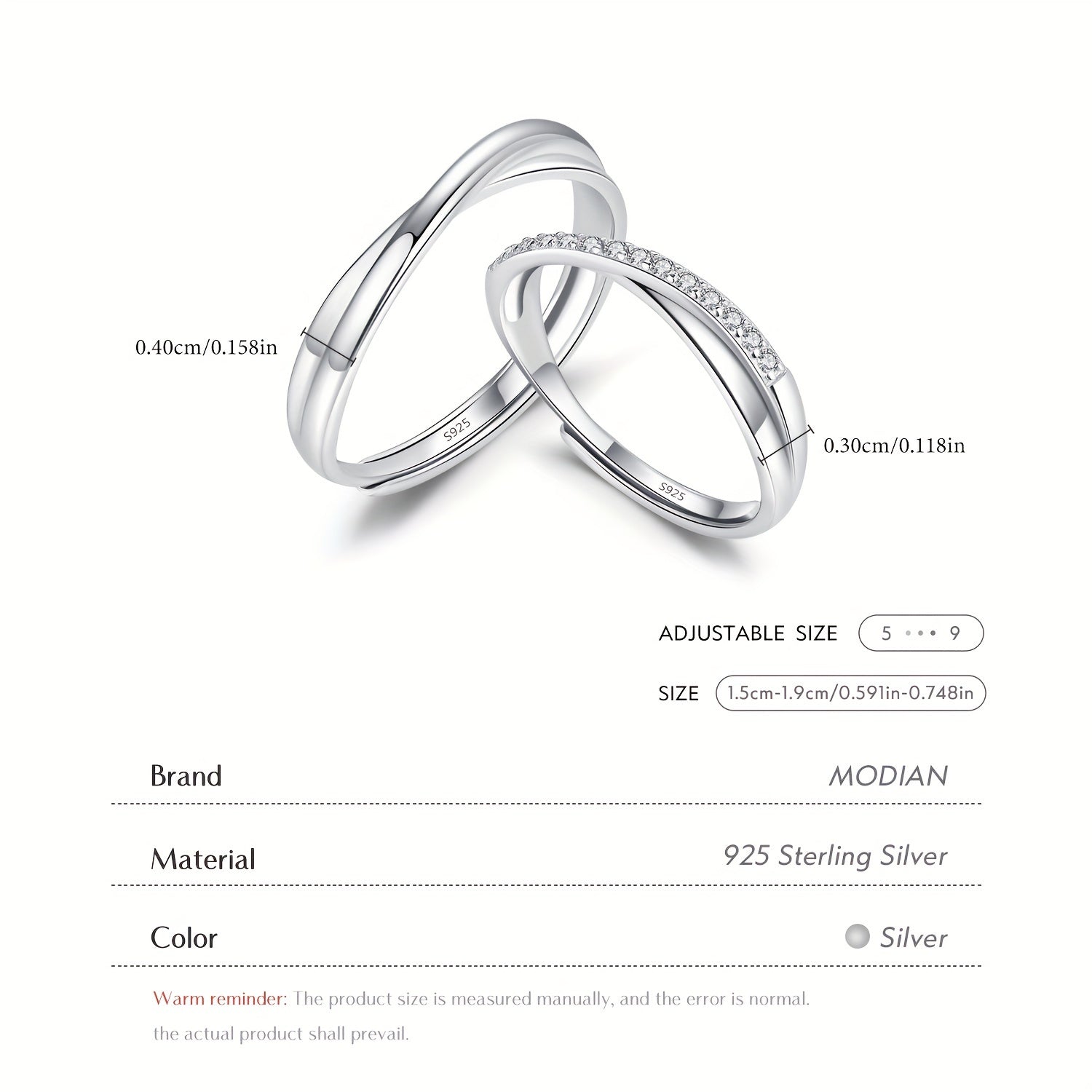 These twined couple rings by MODIAN are made of 925 sterling silver and feature a romantic design with cubic zirconia. Perfect for engagement, wedding, or as a gift to show love and commitment. Ideal for a vacation or special occasion.