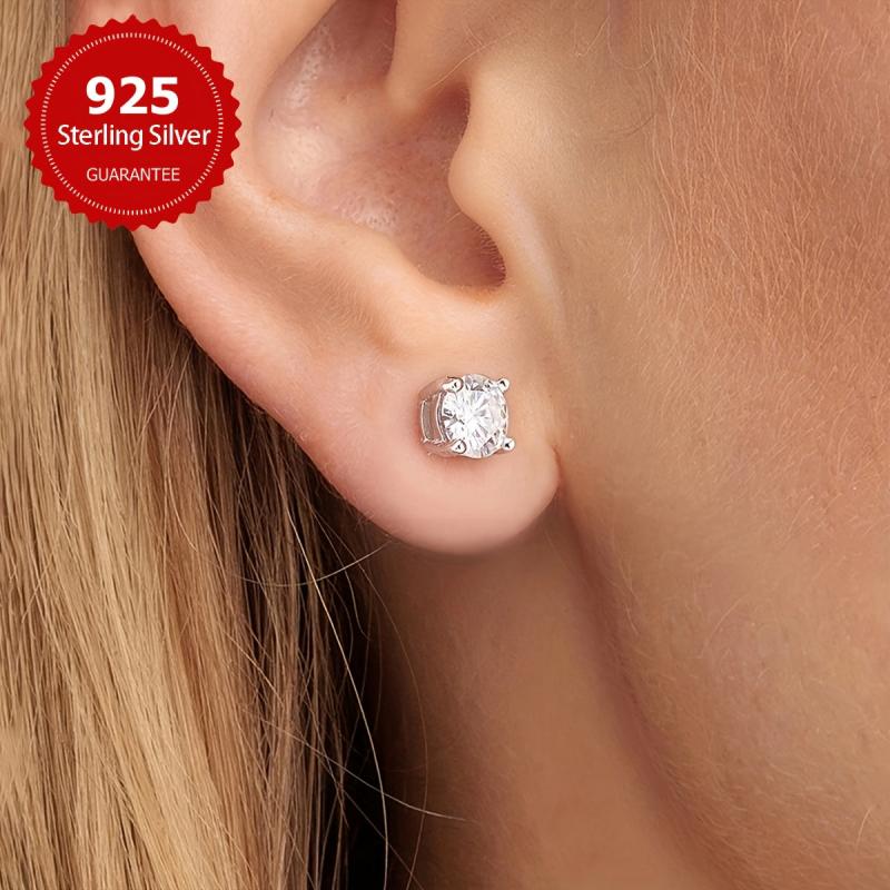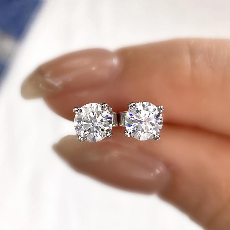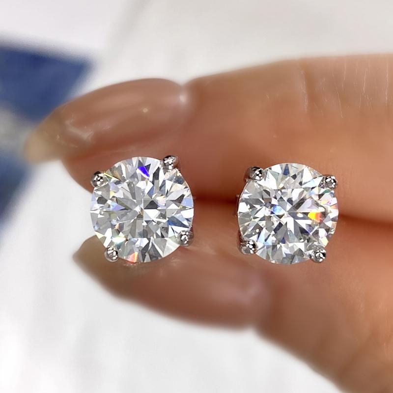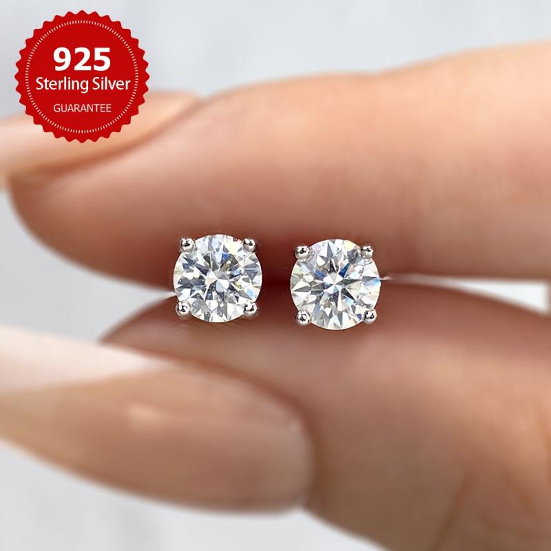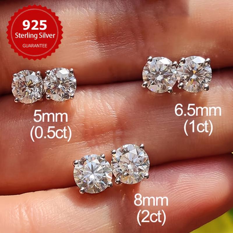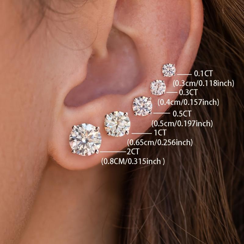 These sparkling Moissanite earrings come in various carat weights and are set in a four-prong design. Crafted with fine silvery metal, these earrings are lightweight and elegant.