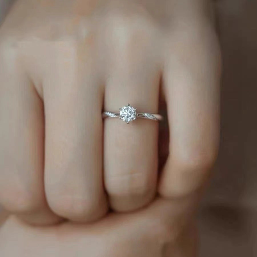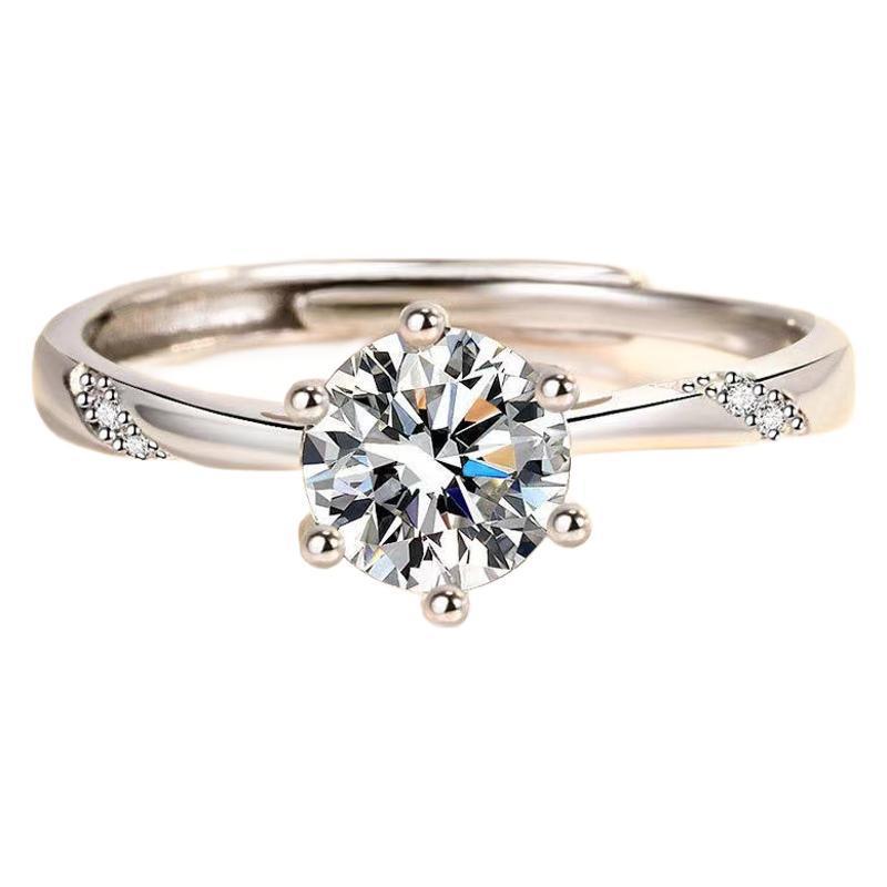 This stunning moissanite engagement ring features a six-claw setting with heart and arrow accents. Crafted from 925 sterling silver, it's a perfect gift for family and partners.