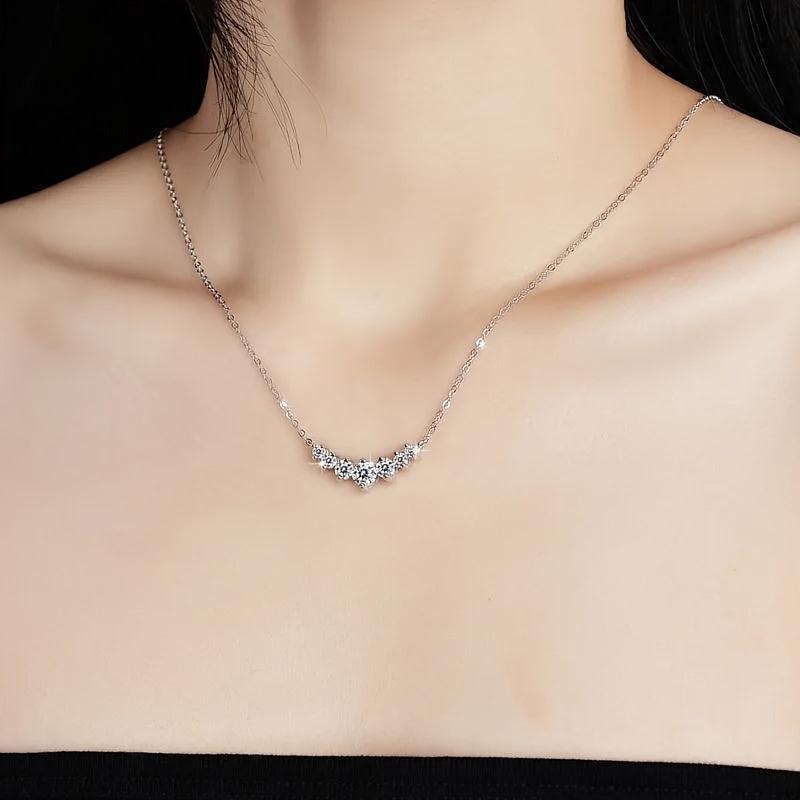 This pendant necklace is made of S925 pure silver plated with full moissanite. Hypoallergenic and perfect for women. Ideal gift for any occasion.