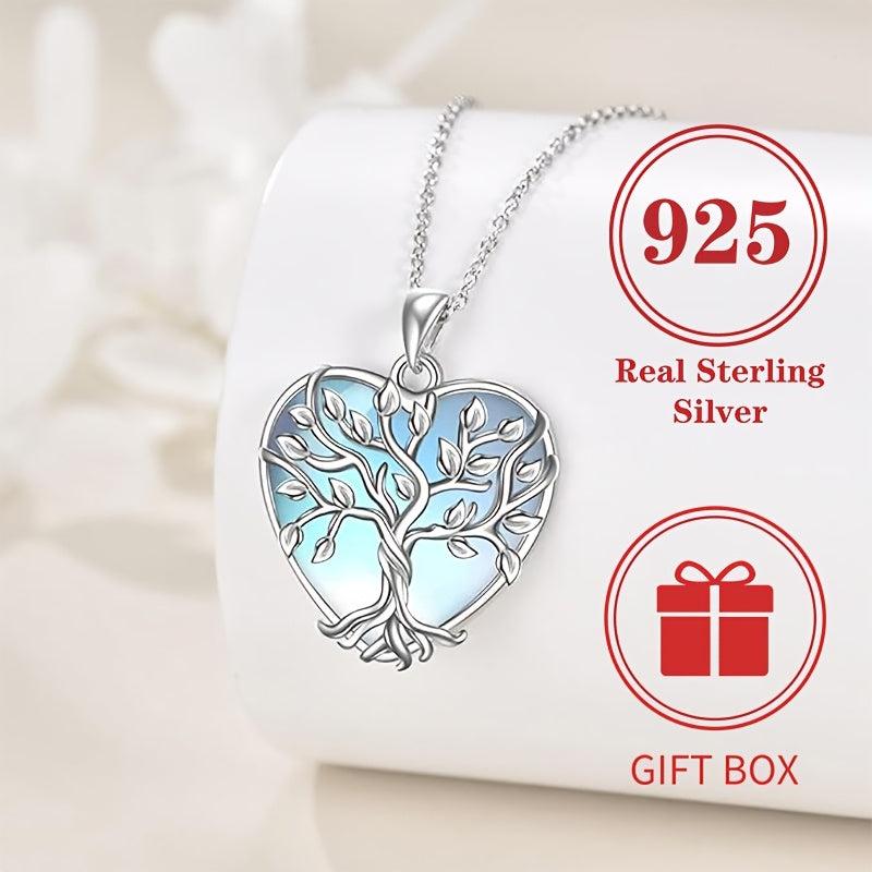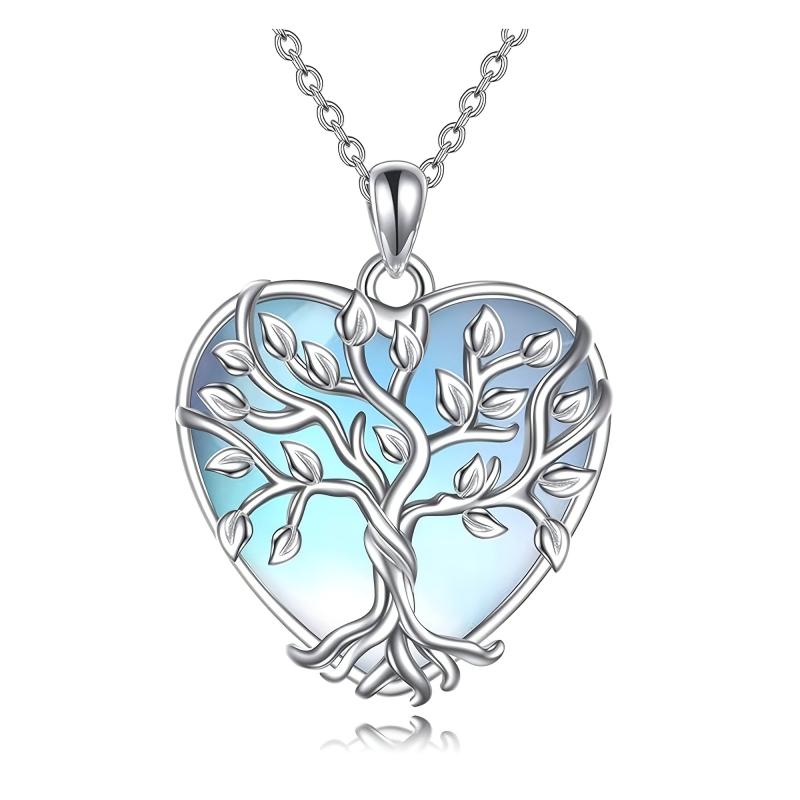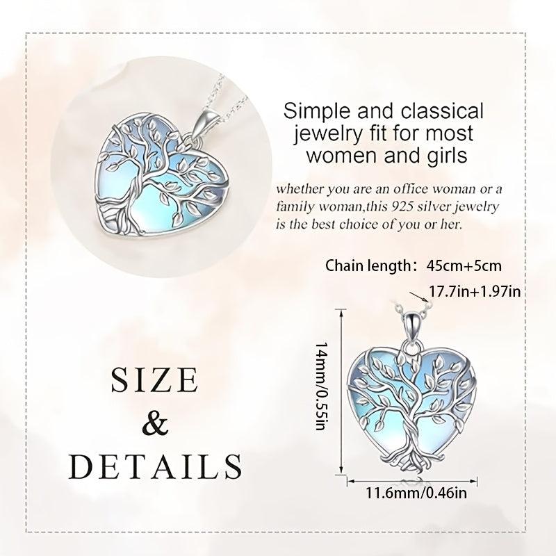 Elegant and enchanting moonstone necklace with a sterling silver teardrop tree of life pendant. Perfect as a gift for women's jewelry collection.