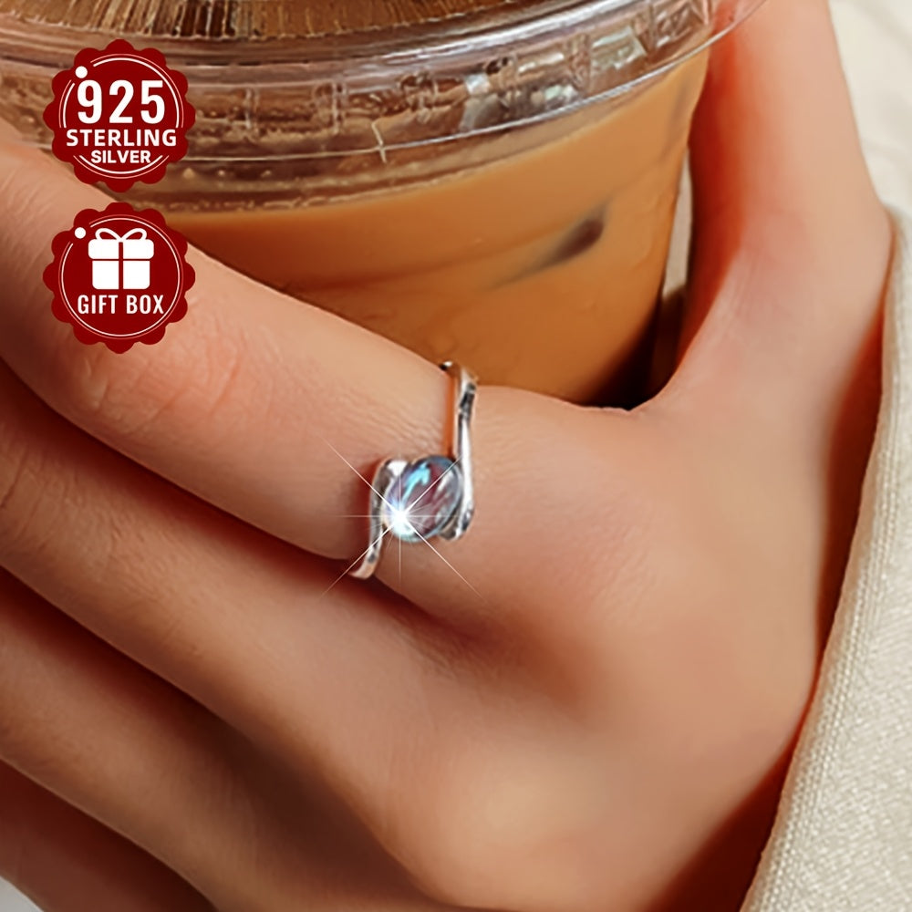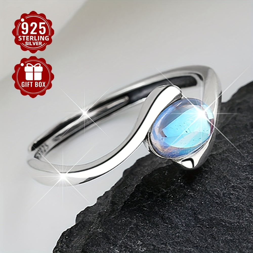 Get ready for a touch of elegance with this S925 sterling silver ring featuring a moonstone. Hypoallergenic and perfect for daily and vacation wear. Gift it to a loved one!
