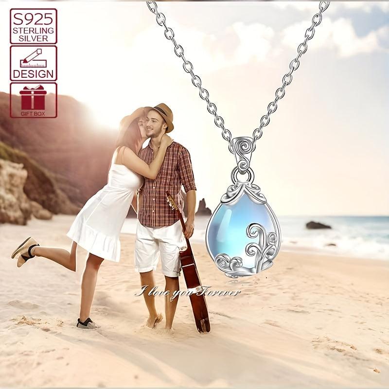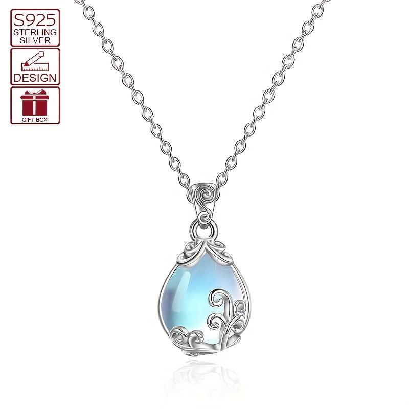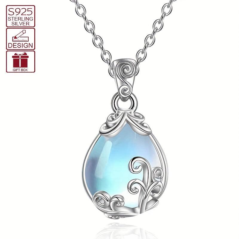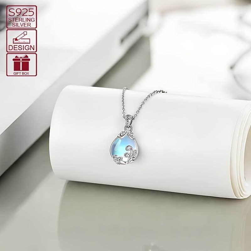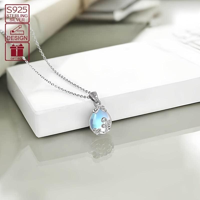 Elevate your casual look with this stunning S925 sterling silver necklace featuring a moonstone teardrop pendant. Hypoallergenic and perfect as a gift.