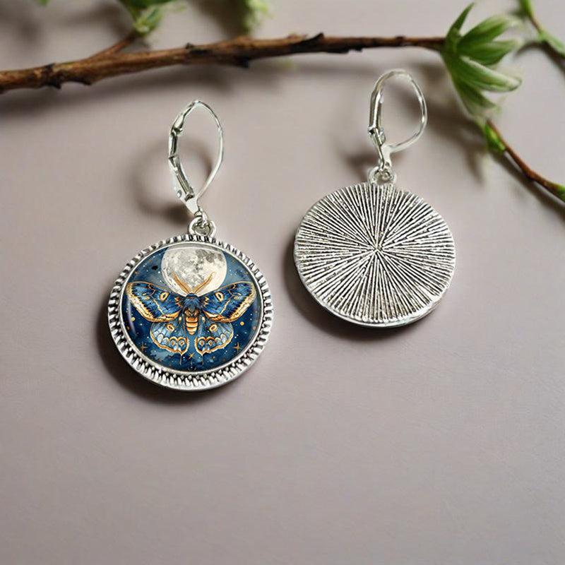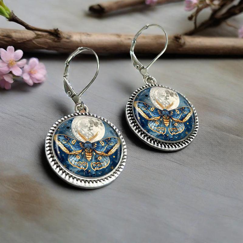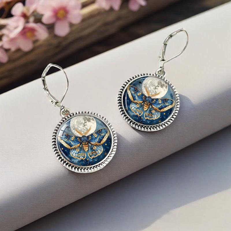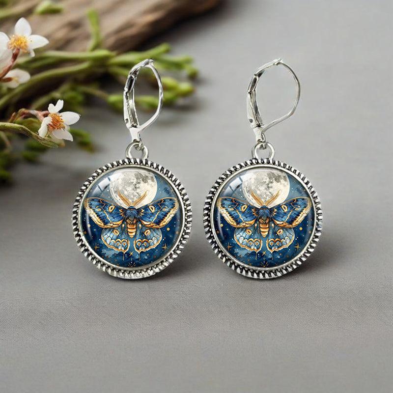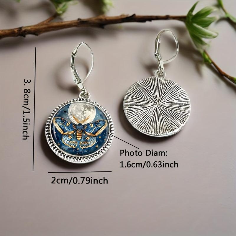 Elegant vintage style drop earrings featuring round glass design. Perfect for adding a touch of charm to your outfit.
