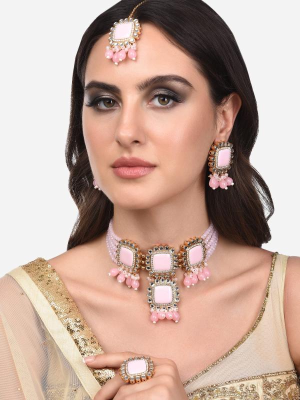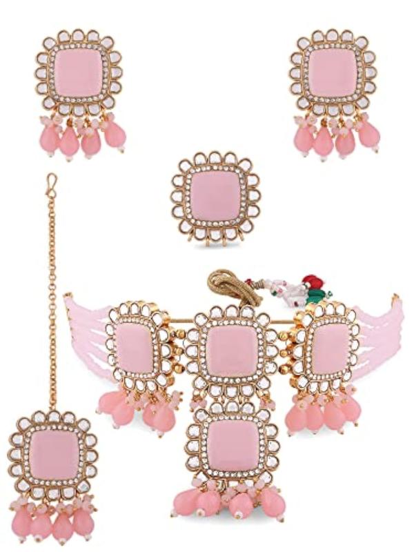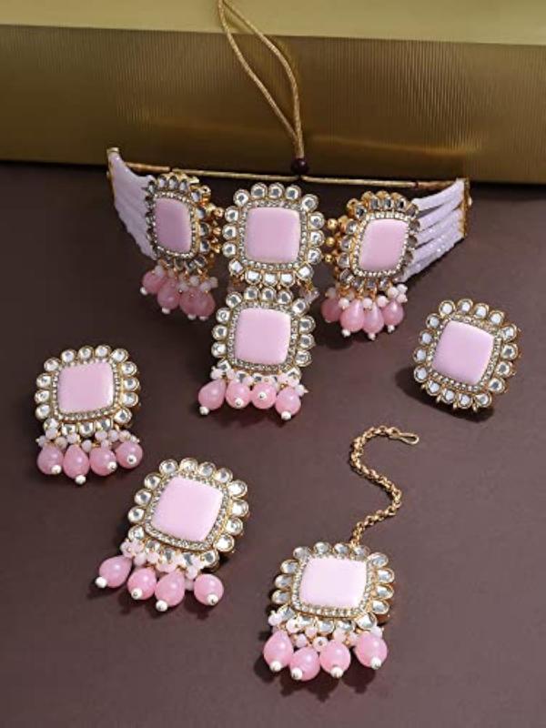 • Includes choker necklace, earrings, maangtikka, and ring