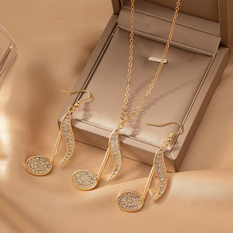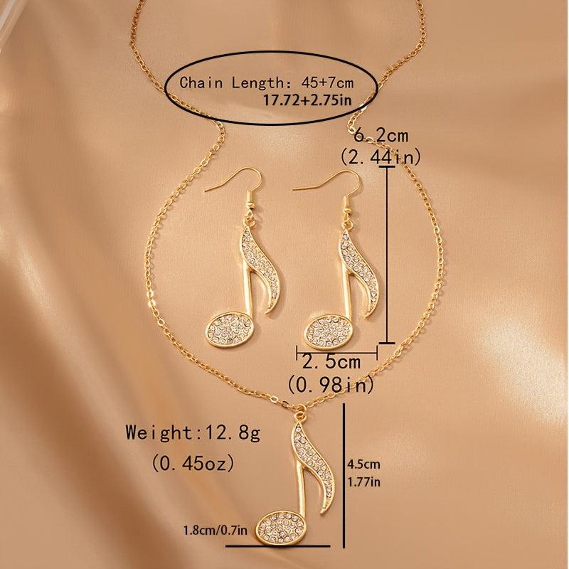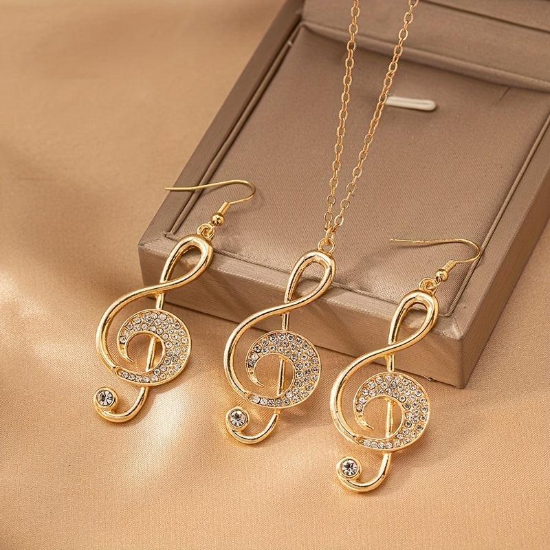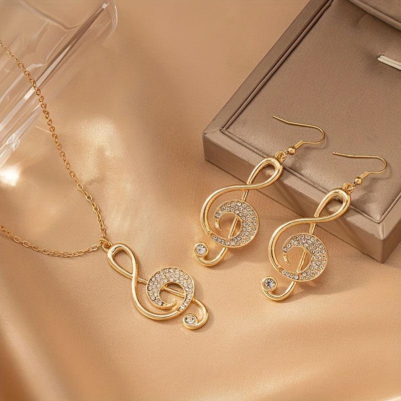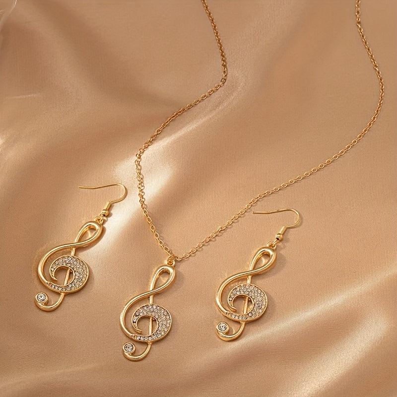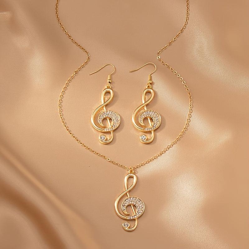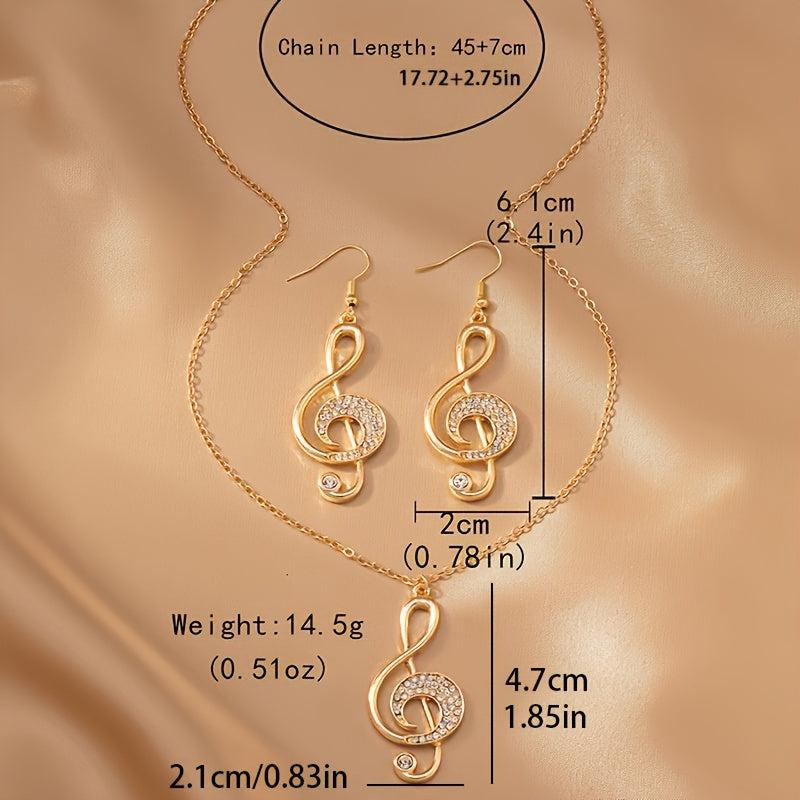 Add a touch of musical flair to your outfit with this elegant necklace and earrings set. Perfect for parties and gatherings.