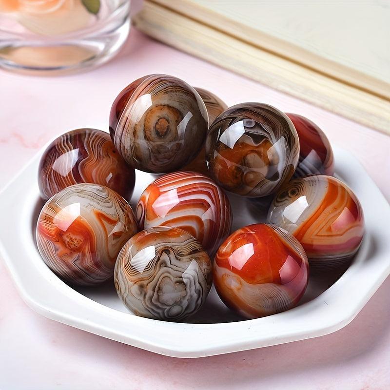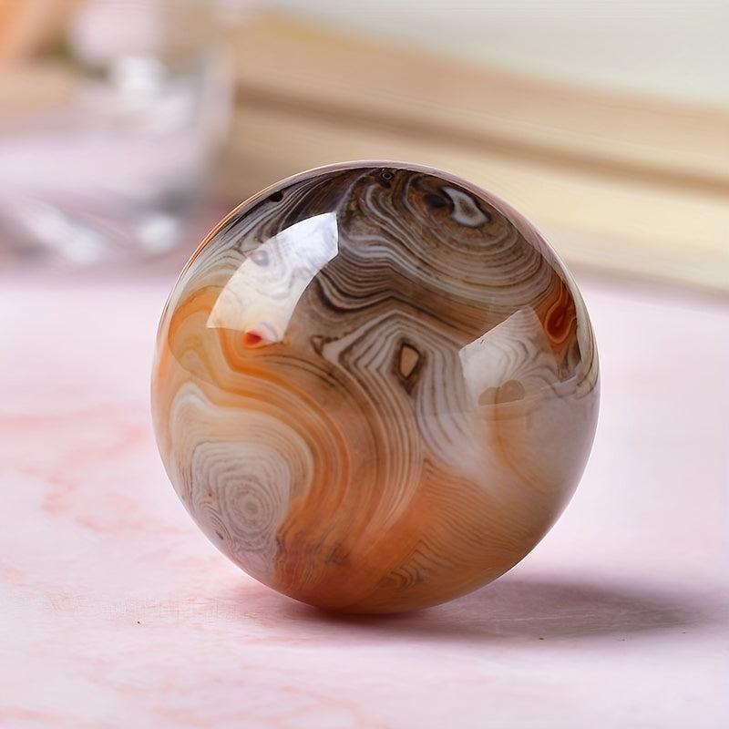 This stunning Agate crystal ball features mesmerizing patterns and is a wonderful present for family and friends. It is a beautiful addition to any space.