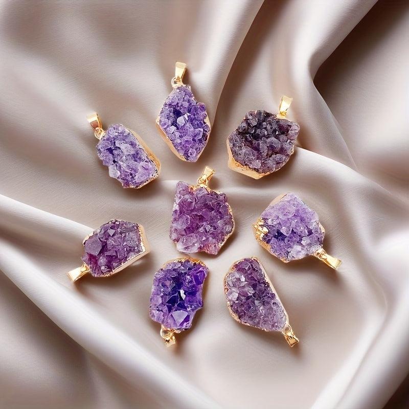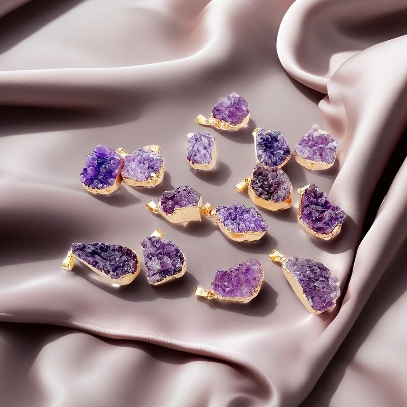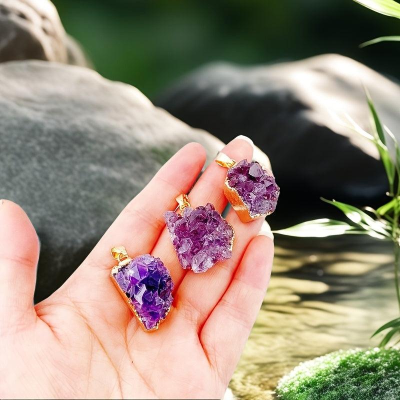 Embrace the beauty of natural Brazilian amethyst with this pendant necklace. The irregular shape and golden chain add a bohemian touch, perfect for daily wear or gifting. Ideal for Mother's Day presents.