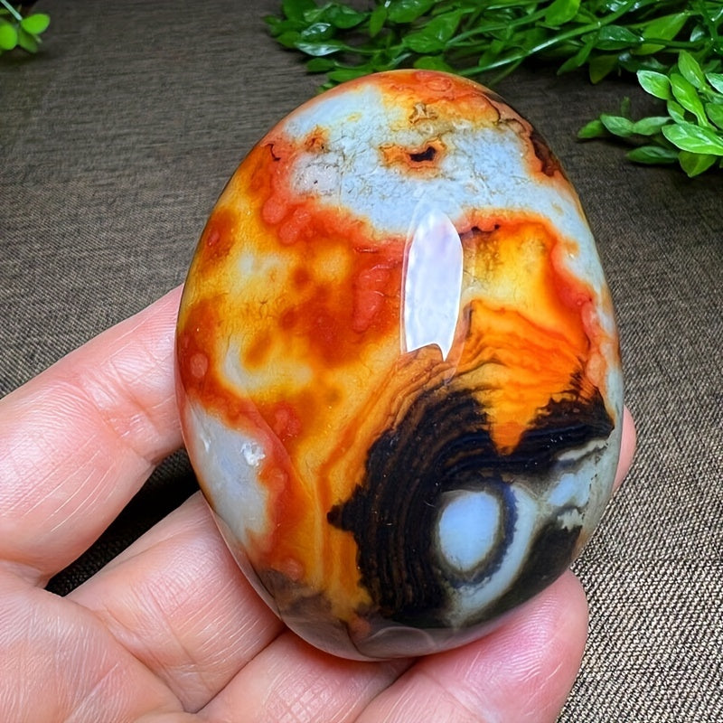 This banded agate palm stone is a perfect gift for family and friends. It is a casual style natural stone jewelry ornament that will bring joy and positivity.