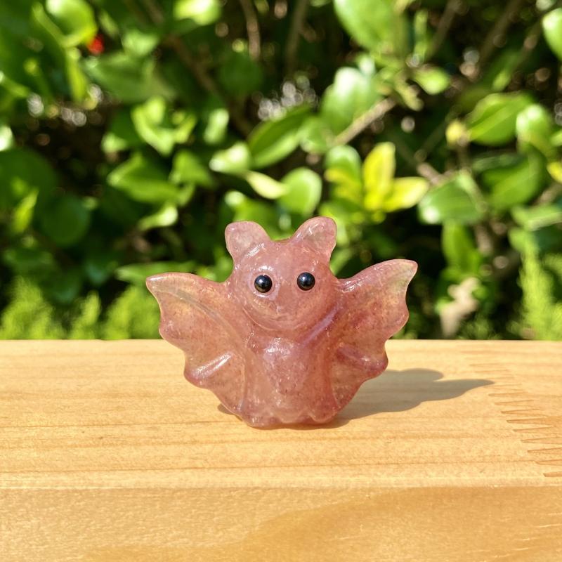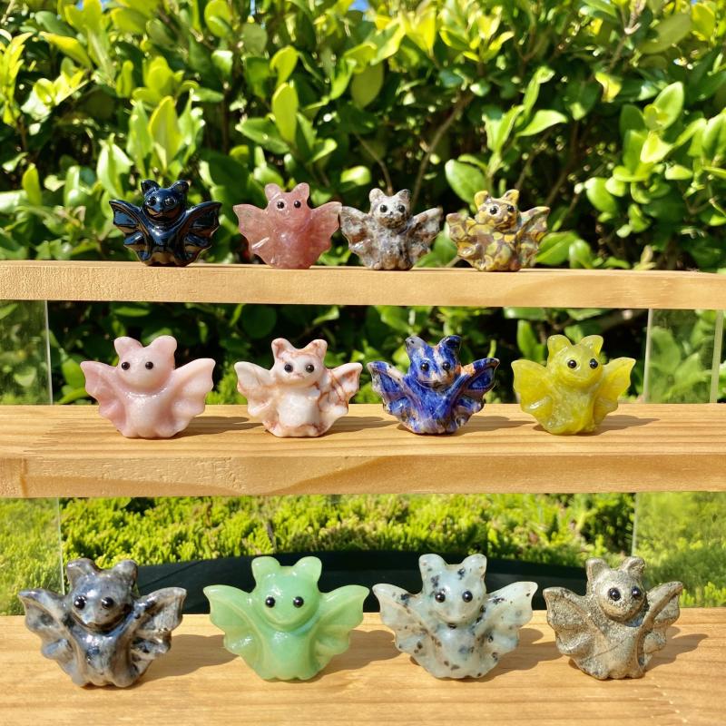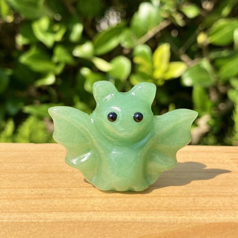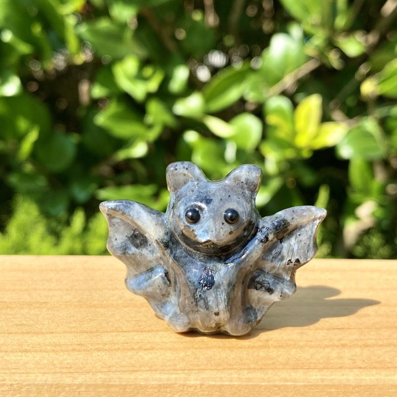 Bring a touch of nature into your home with this charming bat sculpture made of raw stone. Perfect for adding a unique and stylish accent to your living room or as a statement piece in your jewelry collection.