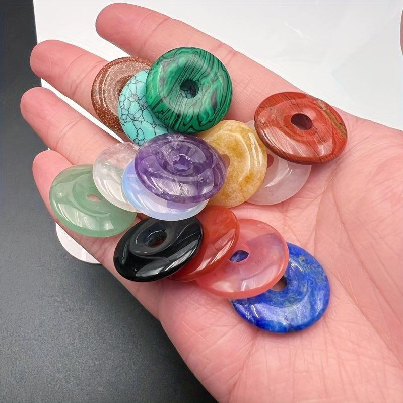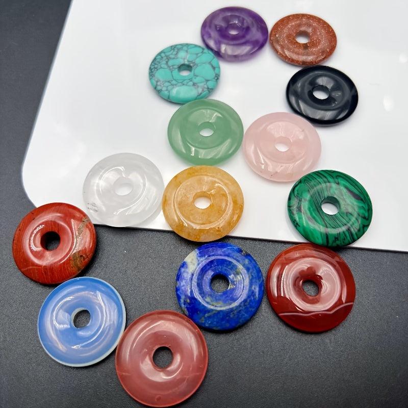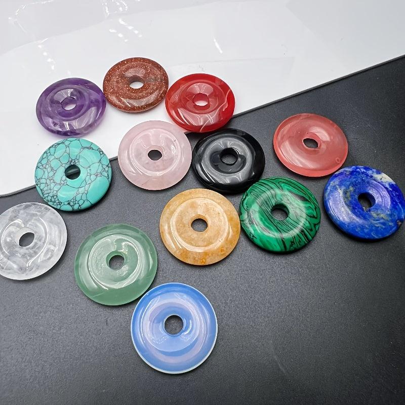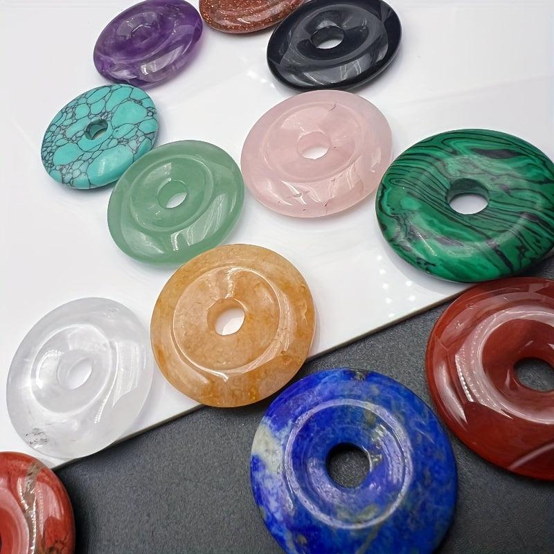 This natural crystal donut pendant is perfect for DIY necklaces and jewelry. It is a rock synthetic gemstone that offers protection and peace.