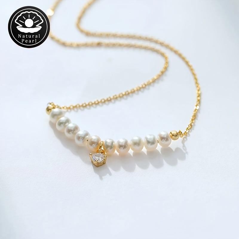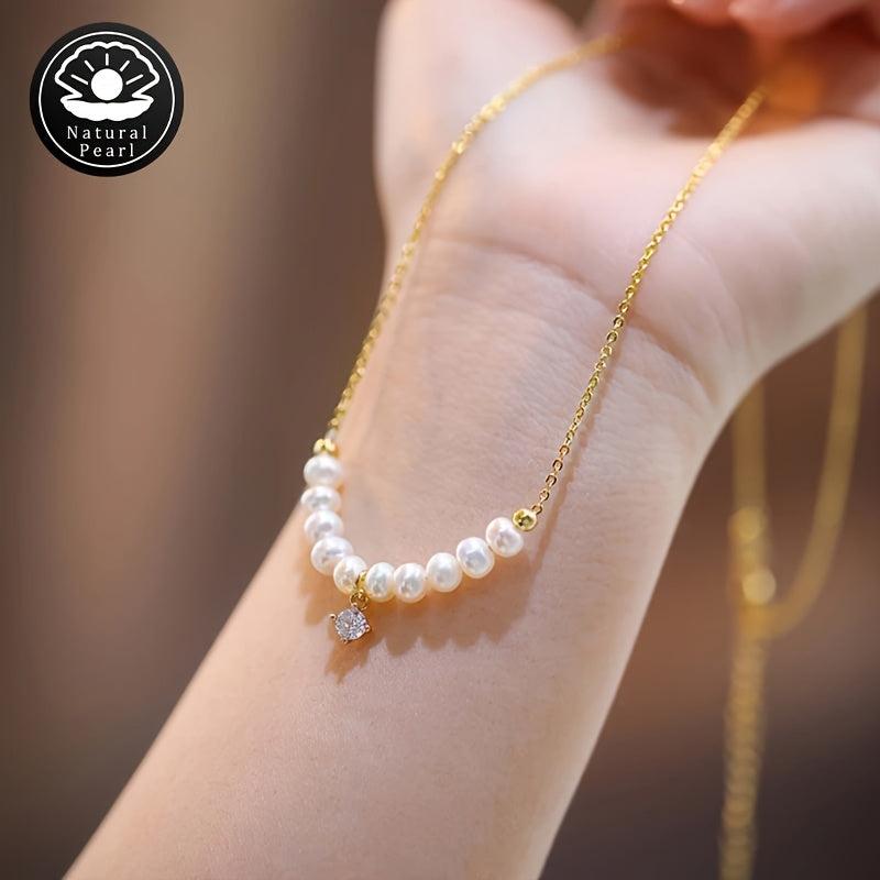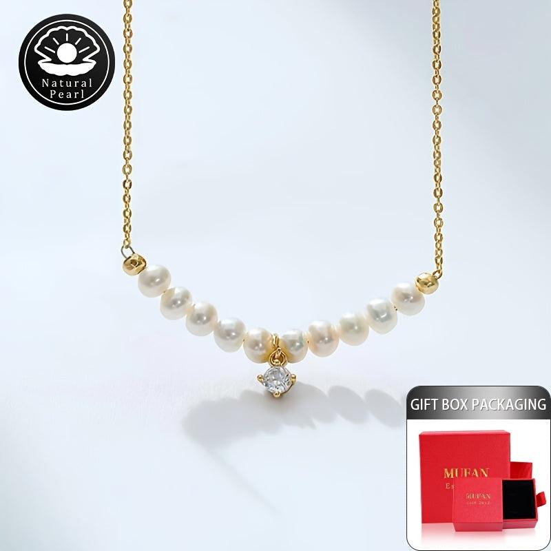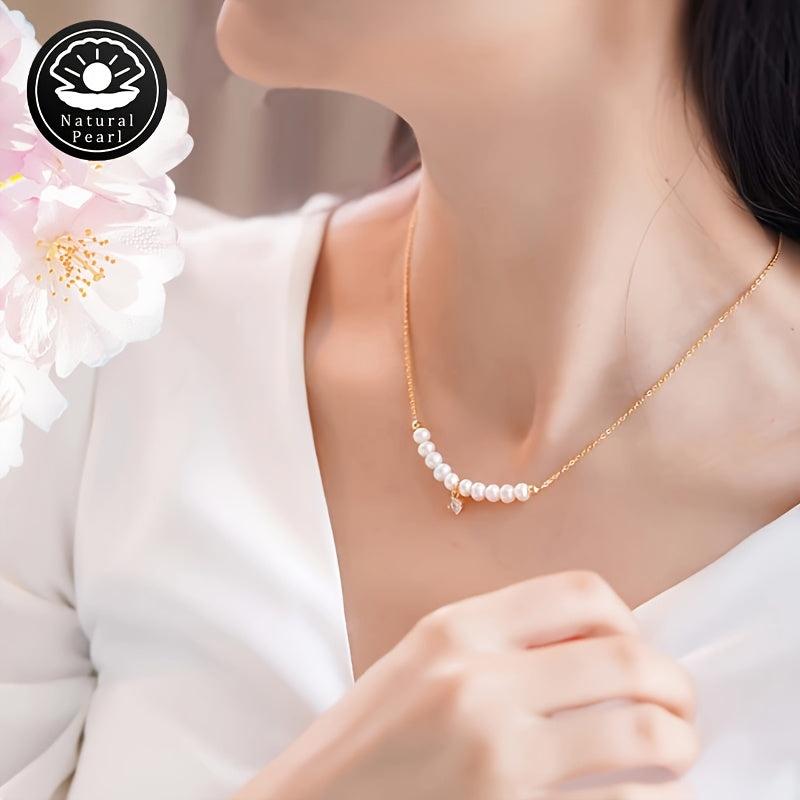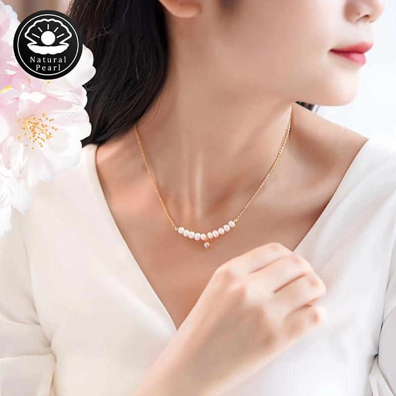 This exquisite pearl necklace features natural freshwater pearls with varying shapes and colors. Each necklace is unique with random patterns and positions.