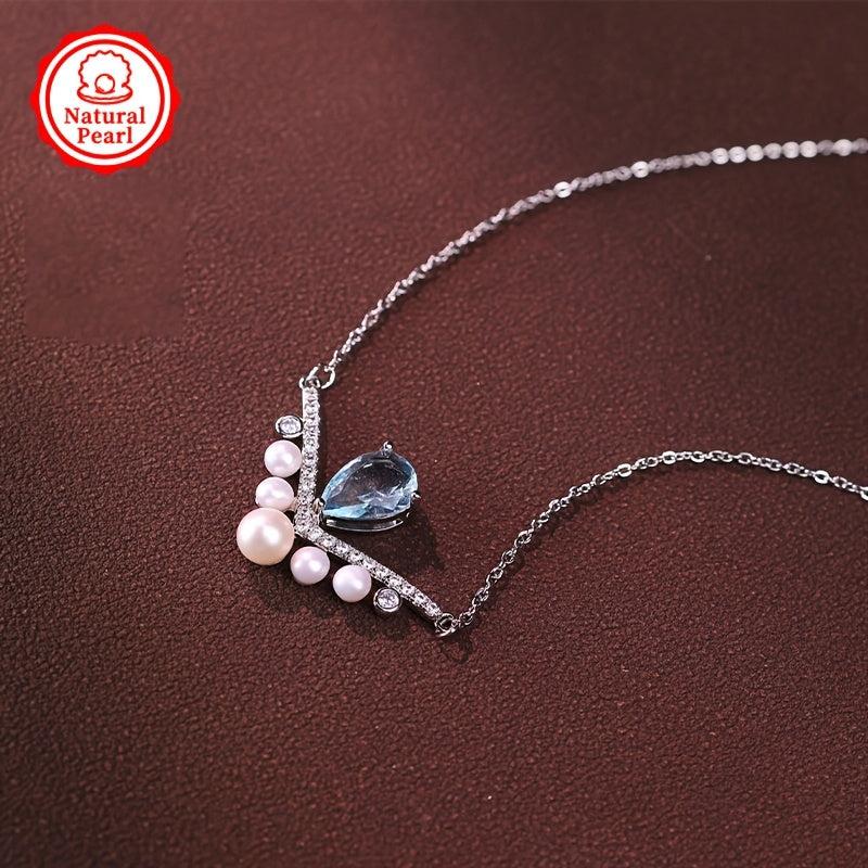Elegant pendant necklace featuring 3-6mm oblate natural freshwater pearls. Each pearl is unique with varying shapes and colors. Perfect accessory for any outfit.
