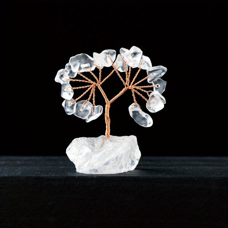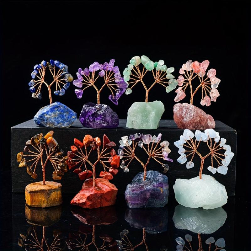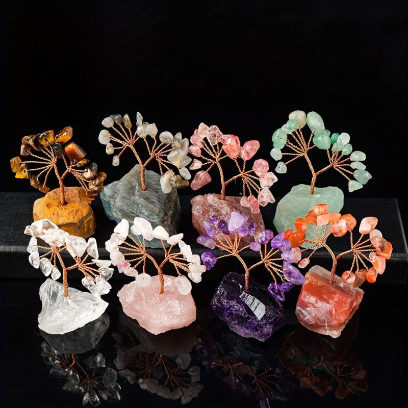 Enhance your space with this mini-sized gemstone crystal lucky tree on a raw stone base. Perfect for home office, desk, or living room decor.