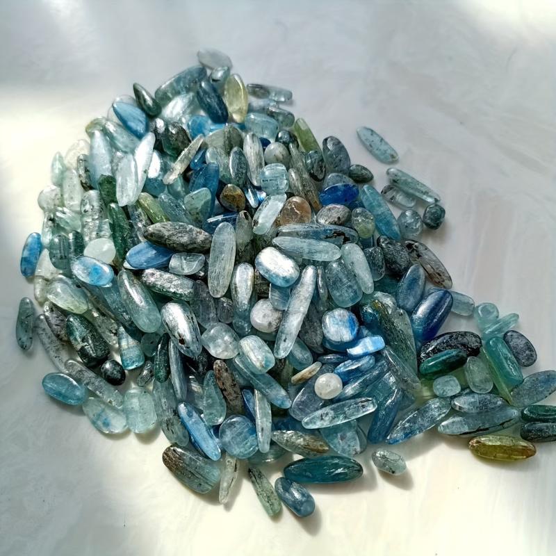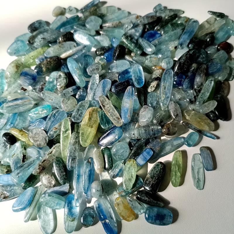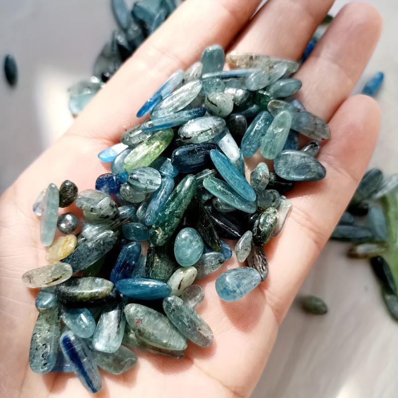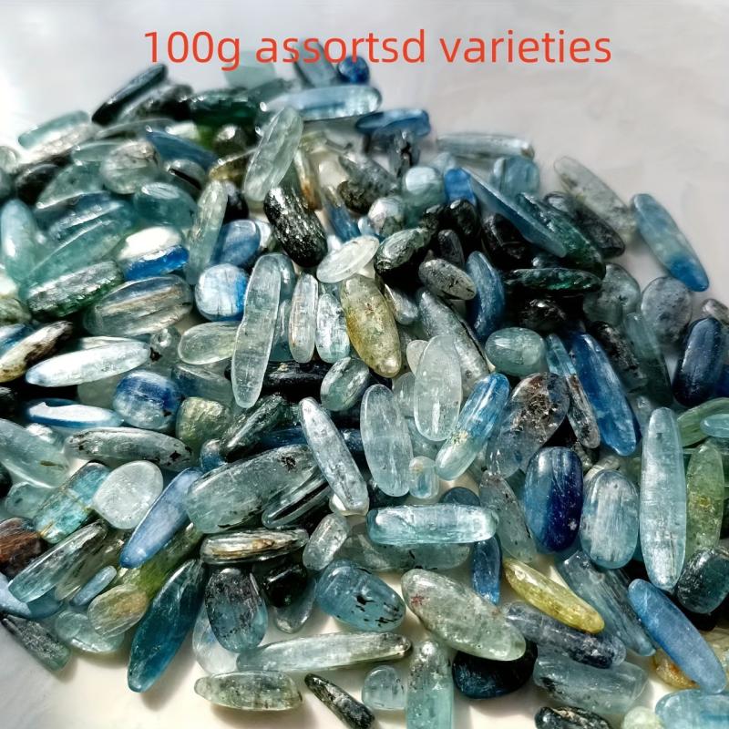 100g bag of big size kyanite chips, perfect for aquarium decor, jewelry making, home decor, and unique gift ideas. These polished gemstones add a touch of elegance to any setting.