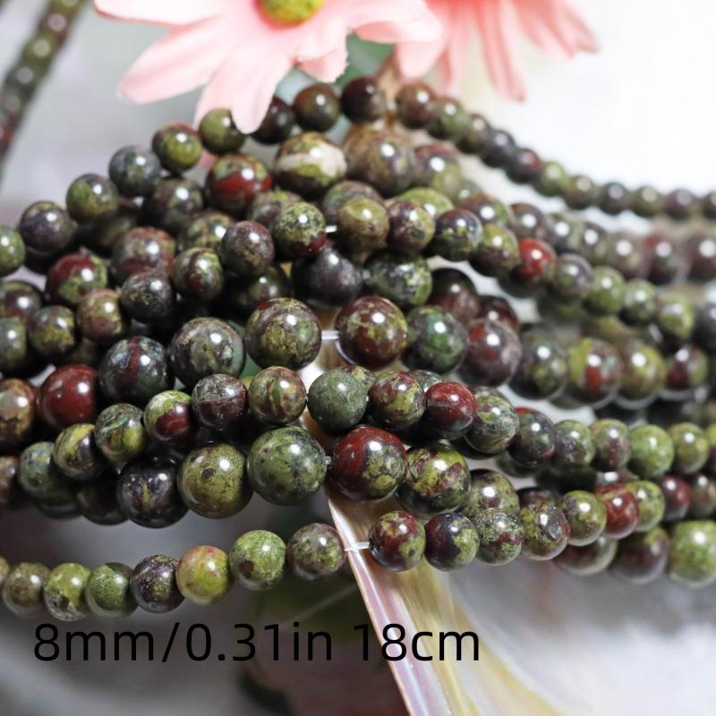 Get creative with these natural red and green dragon bloodstone beads that are perfect for making bracelets and necklaces. Each strand contains dinosaur stone spacer beads for unique designs.