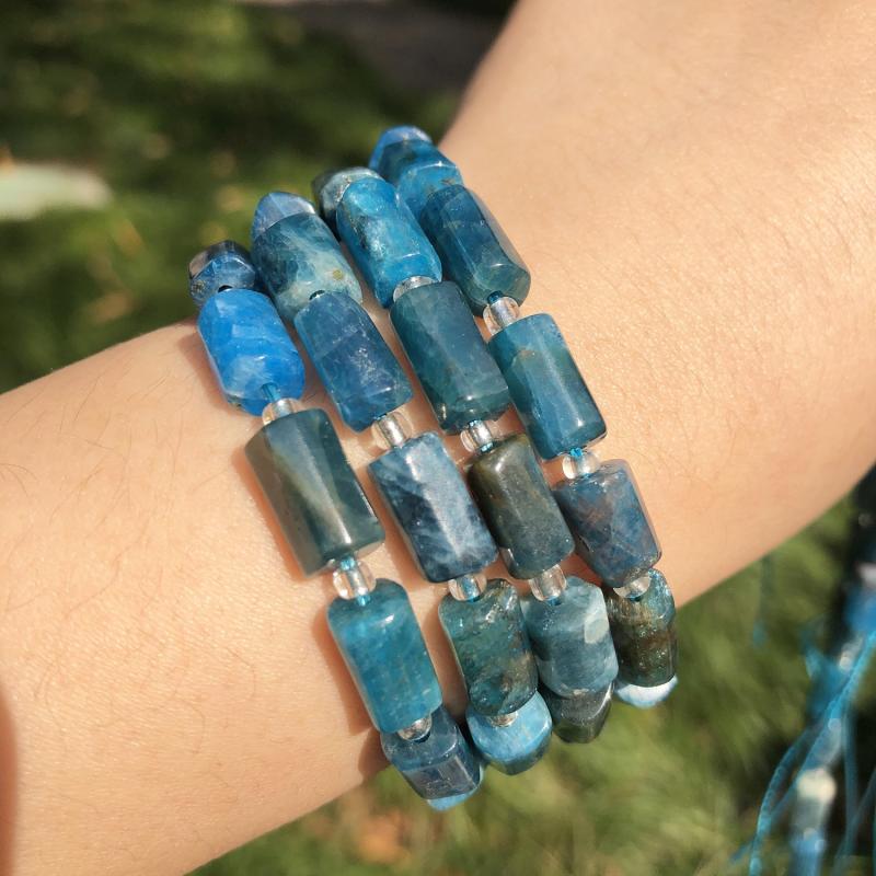 Add a touch of elegance to your jewelry designs with these beautiful sea apatite column beads. Each bead is 8-11mm in size and features a faceted cylindrical shape. Perfect for creating unique and eye-catching pieces.