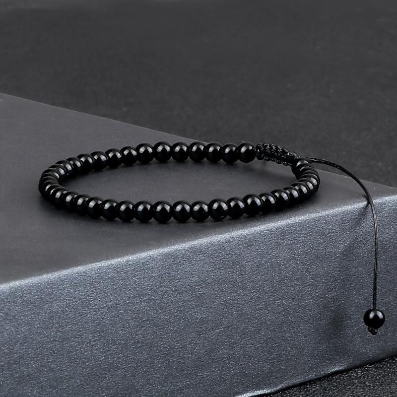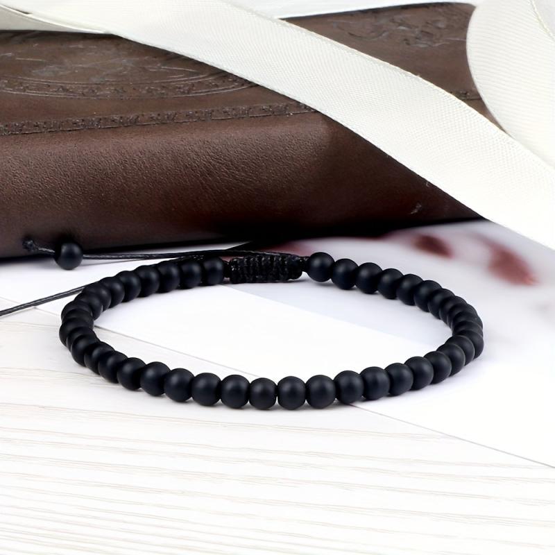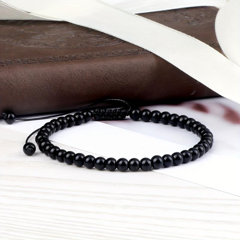 This bracelet is a stylish and minimalist accessory suitable for everyday wear. It features 4mm natural stone beads woven into a sleek design. Perfect as a gift for women who appreciate timeless elegance.