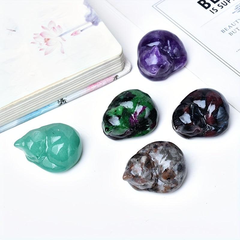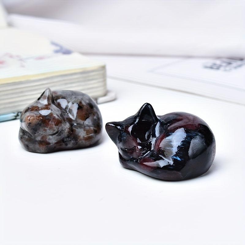 This exquisite natural stone cat carving is a perfect addition to your home decor, featuring a sleeping cat design. It can also be used as a mineral specimen or as a charming piece of faux gemstone jewelry accessories.
