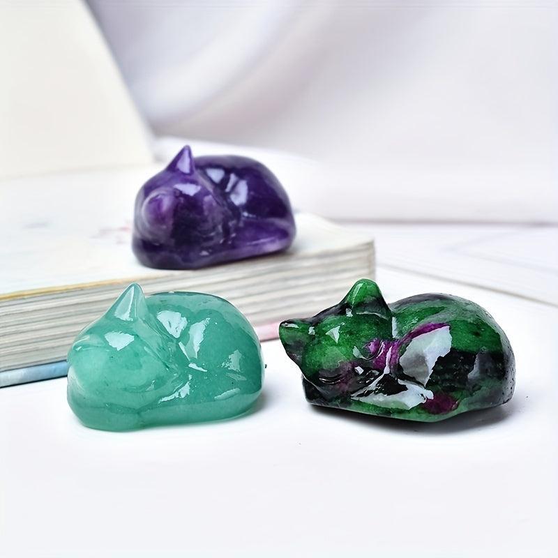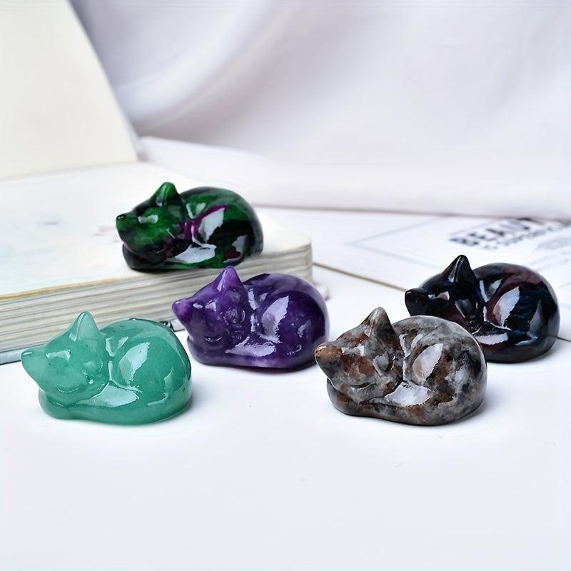 Natural Stone Carved Sleeping Cat Crystal Home Decor