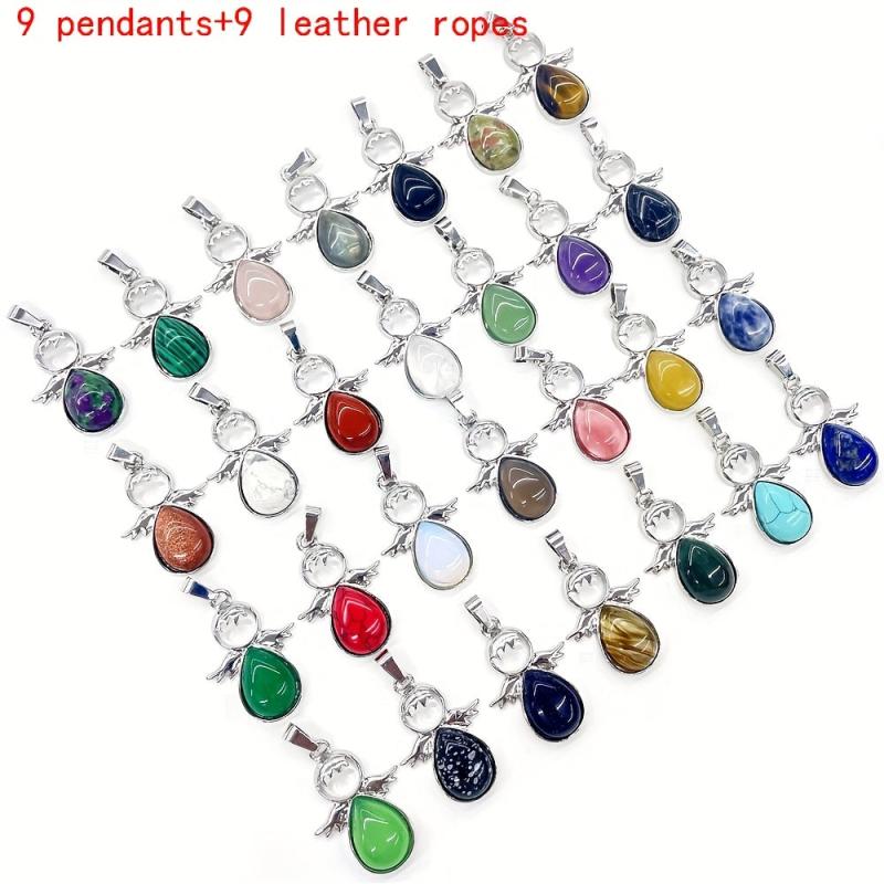 Create your own unique jewelry with this set of natural stone water drop wing figure pendants. Perfect for daily wear, holidays, and home decoration.