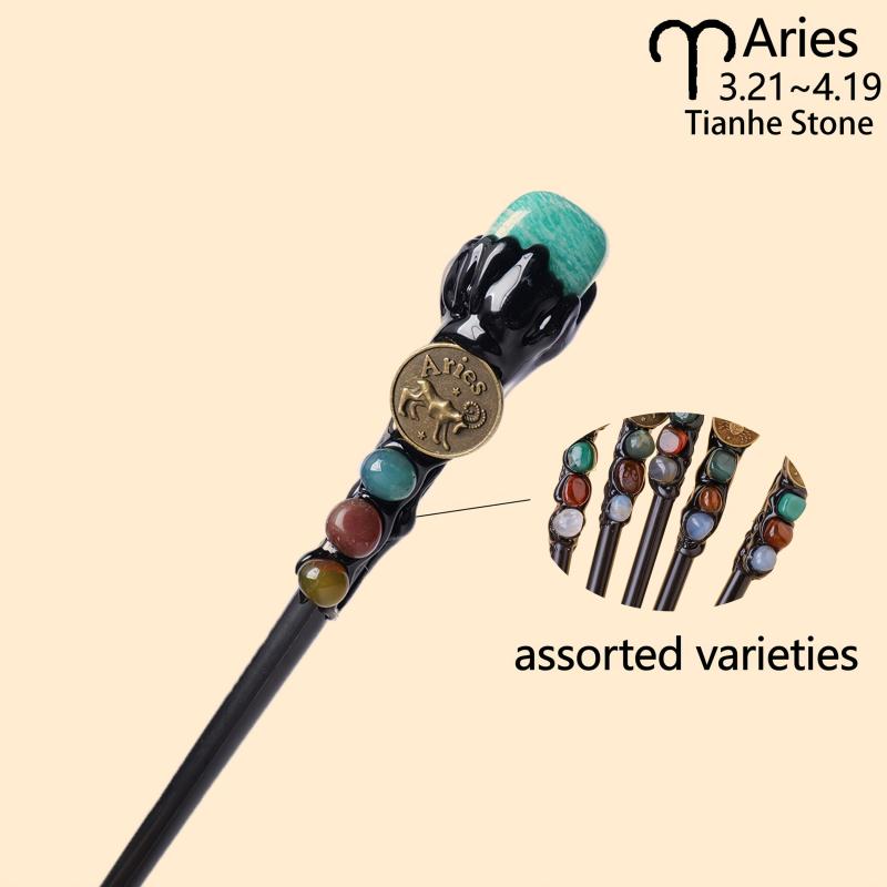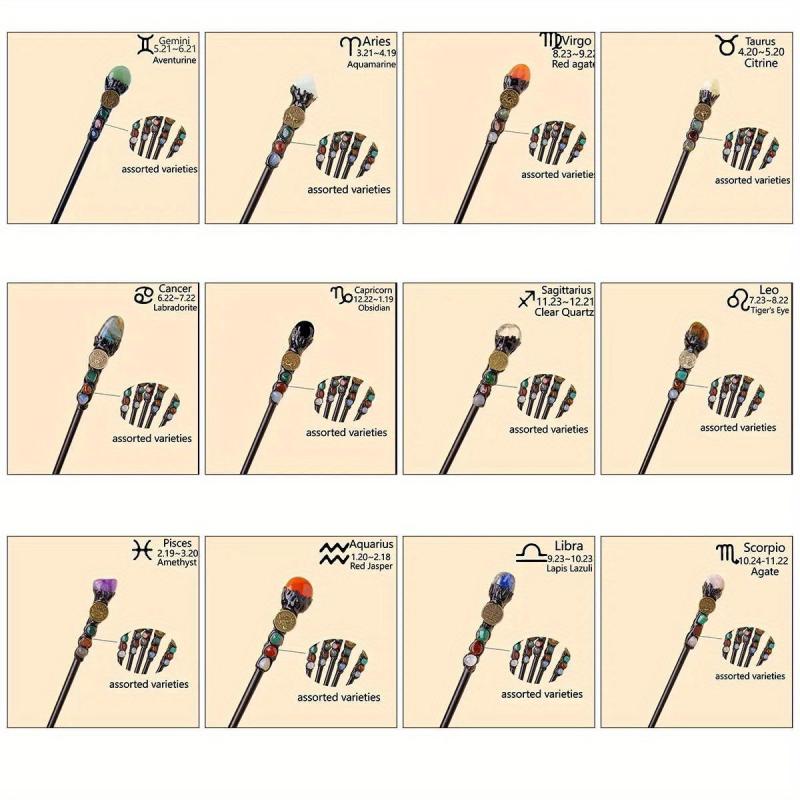 This unique scepter is adorned with natural stones representing zodiac signs. Perfect for magical or fairy-themed events.