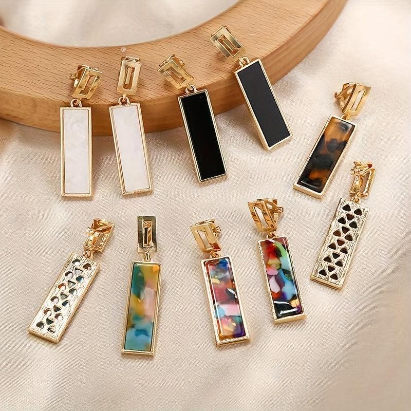 Add a touch of nautical charm to your outfit with these vintage style resin mosaic clip-on earrings. The analog stone creation and alloy base make them a perfect accessory for parties and vacations.