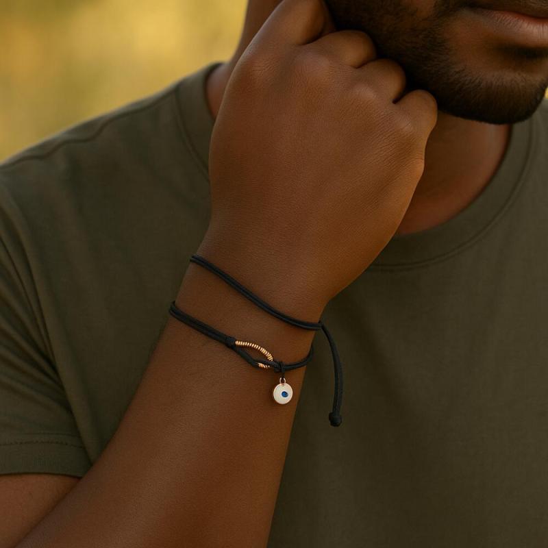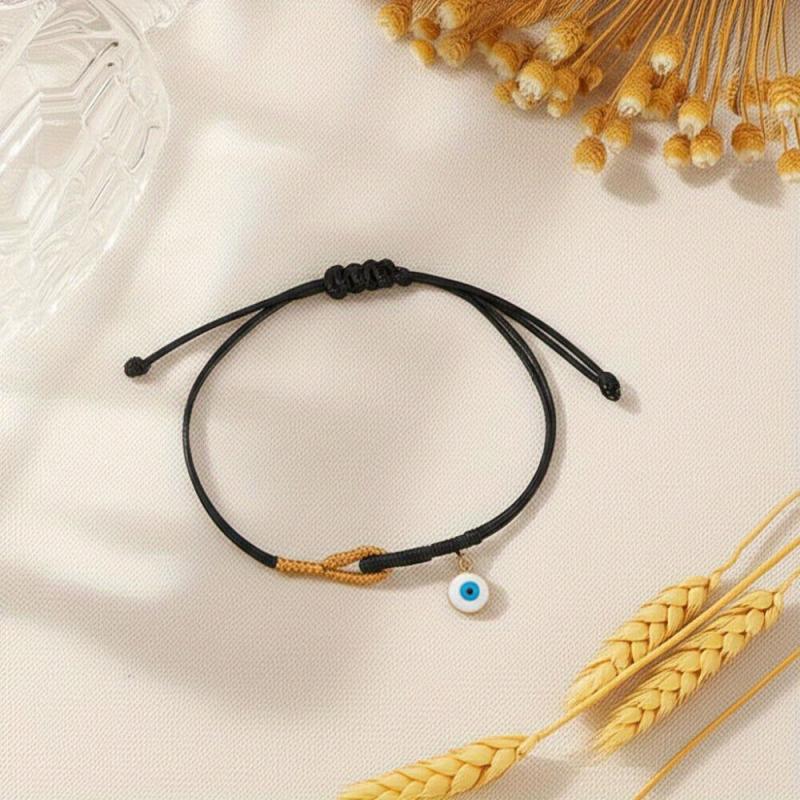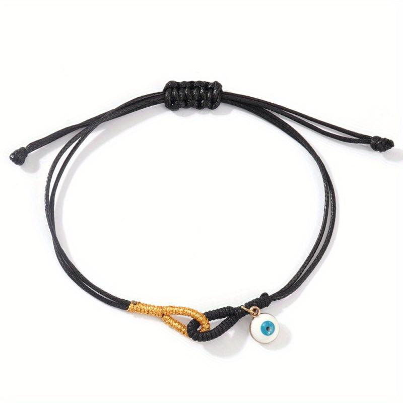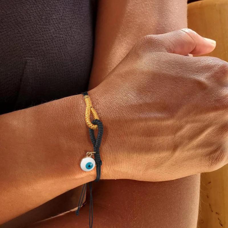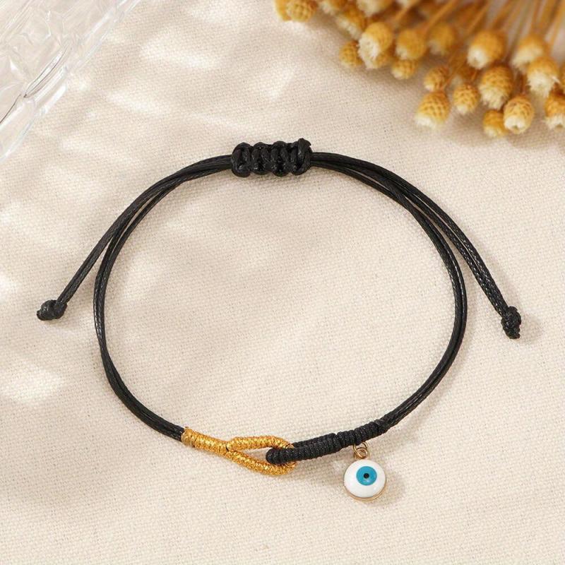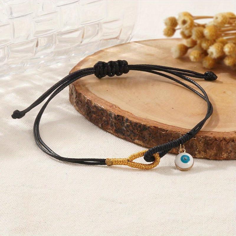 This minimalist bracelet features an evil eye pendant on a wax cord braided bead, perfect for daily casual wear or gatherings.