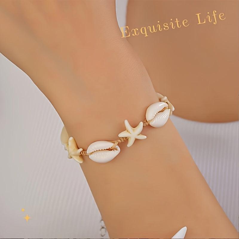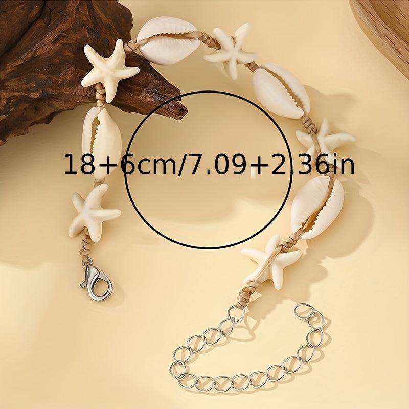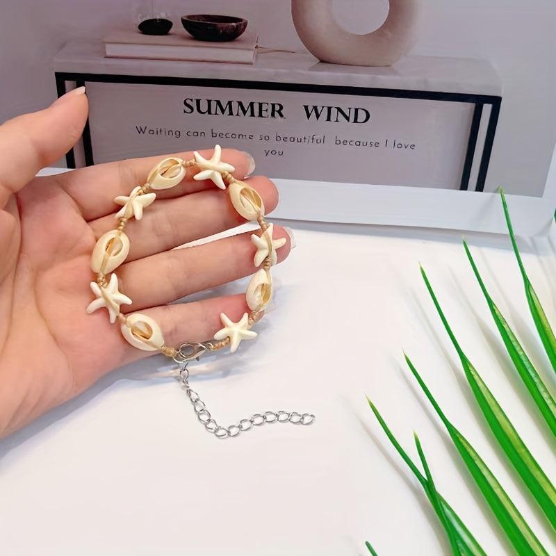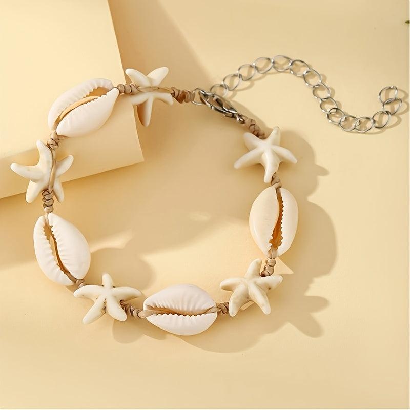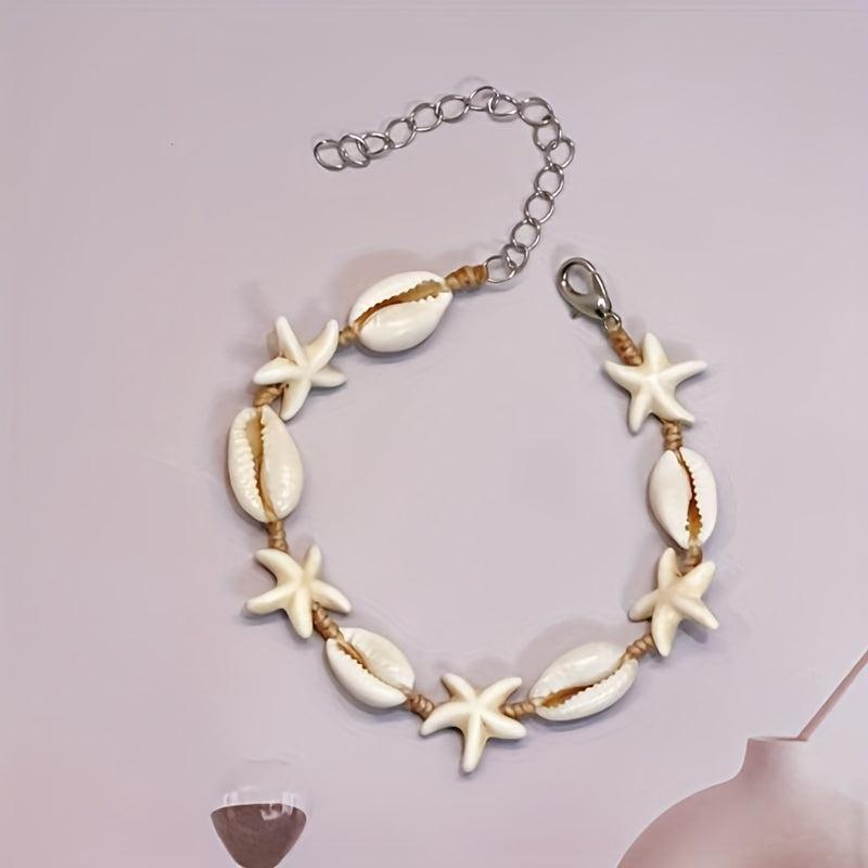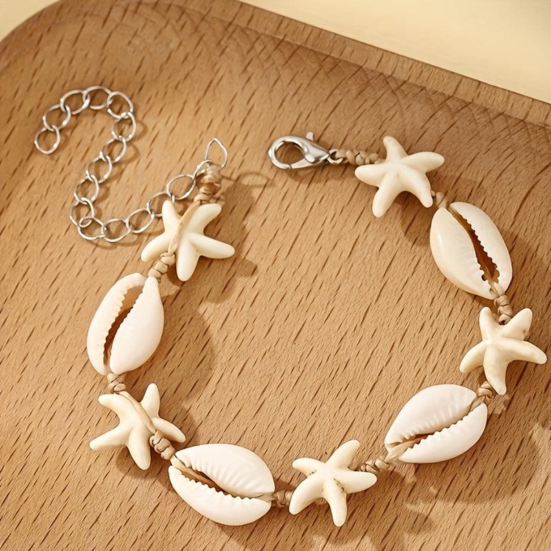 Get a touch of the sea with this charming bracelet featuring starfish and shell charms. The adjustable jute cord ensures a comfortable fit. Perfect for beach lovers!
