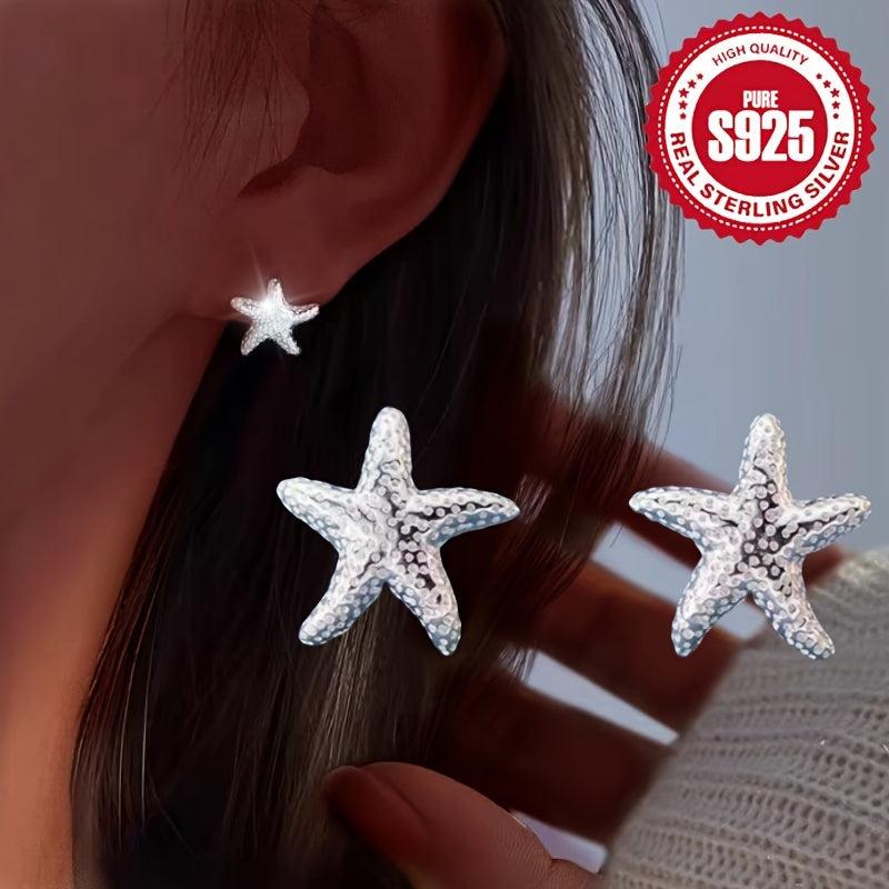 These ocean starfish earrings are perfect for daily wear, dates, or vacations. Made of S925 silver, they are low allergy and lightweight at 1.8g. The textured design adds a unique touch to your outfit.