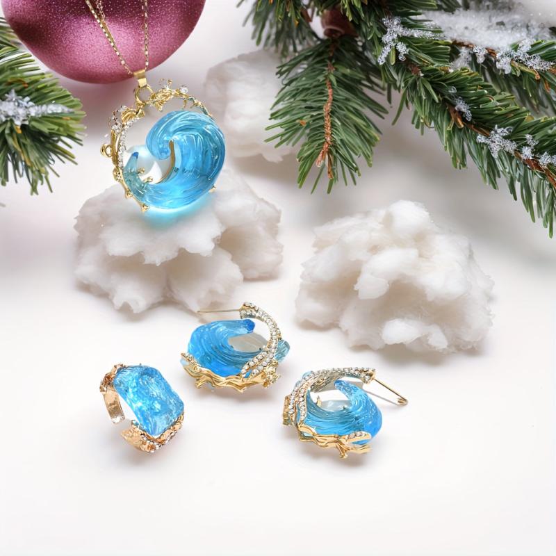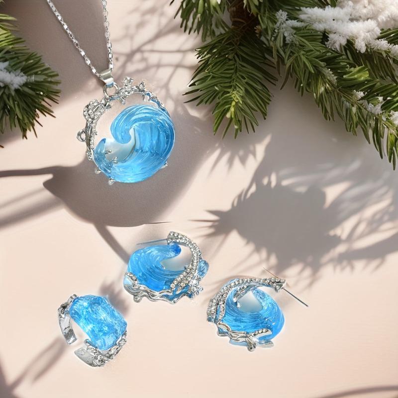Complete your summer look with this 3-piece set featuring a necklace, ring, and earrings. The set is perfect for pairing with strapless dresses and adds a touch of ocean style to your outfit.