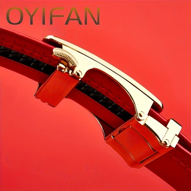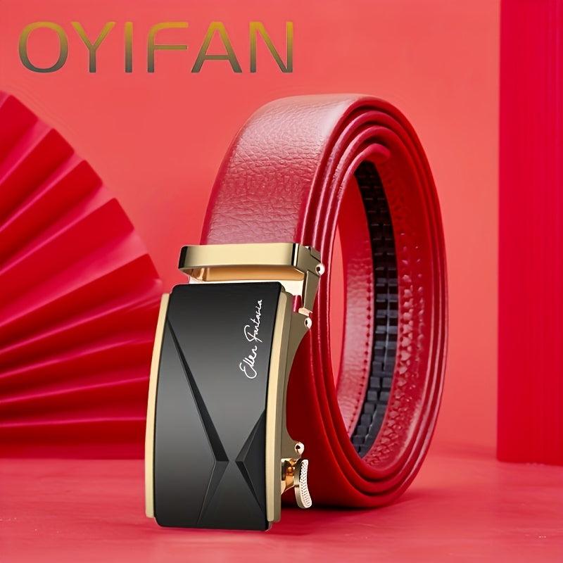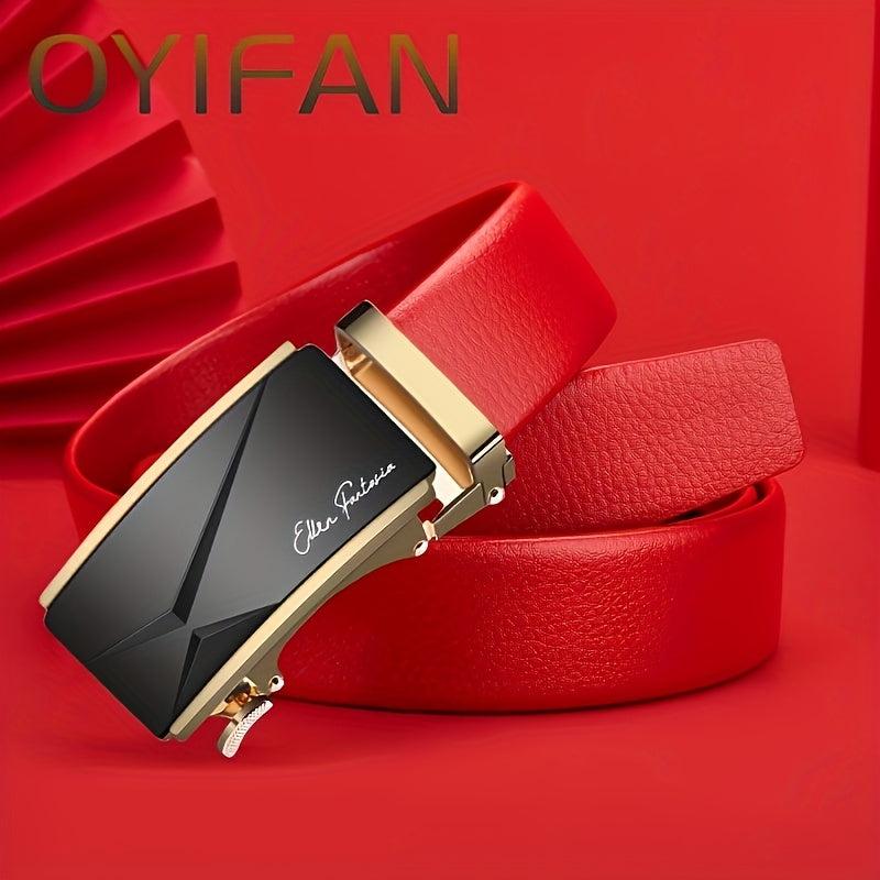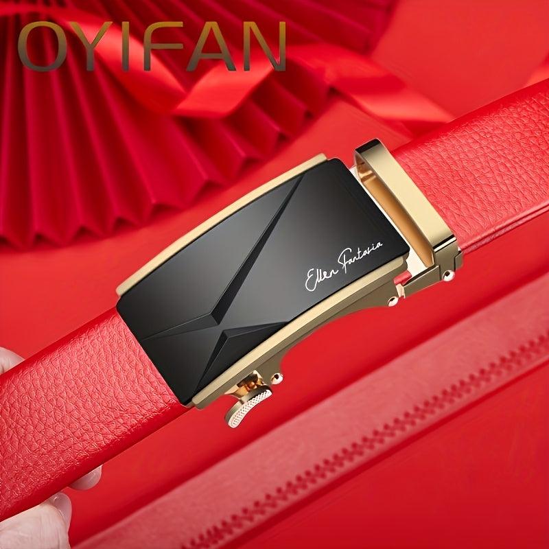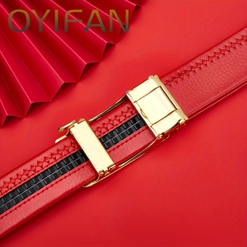 This stylish belt is made of high-quality cowhide leather and features an automatic sliding ratchet buckle. It offers a perfect fit with adjustable trim for both business and casual wear.
