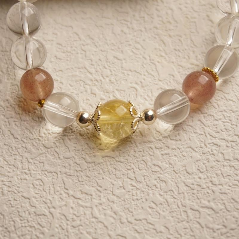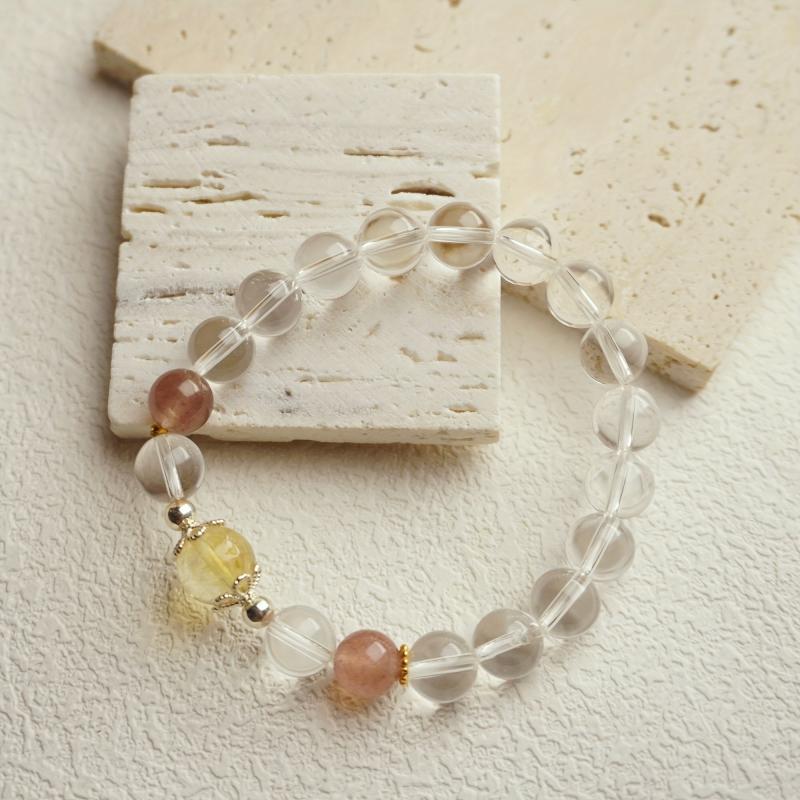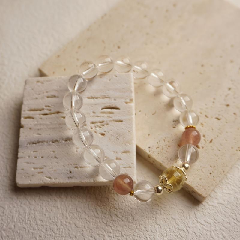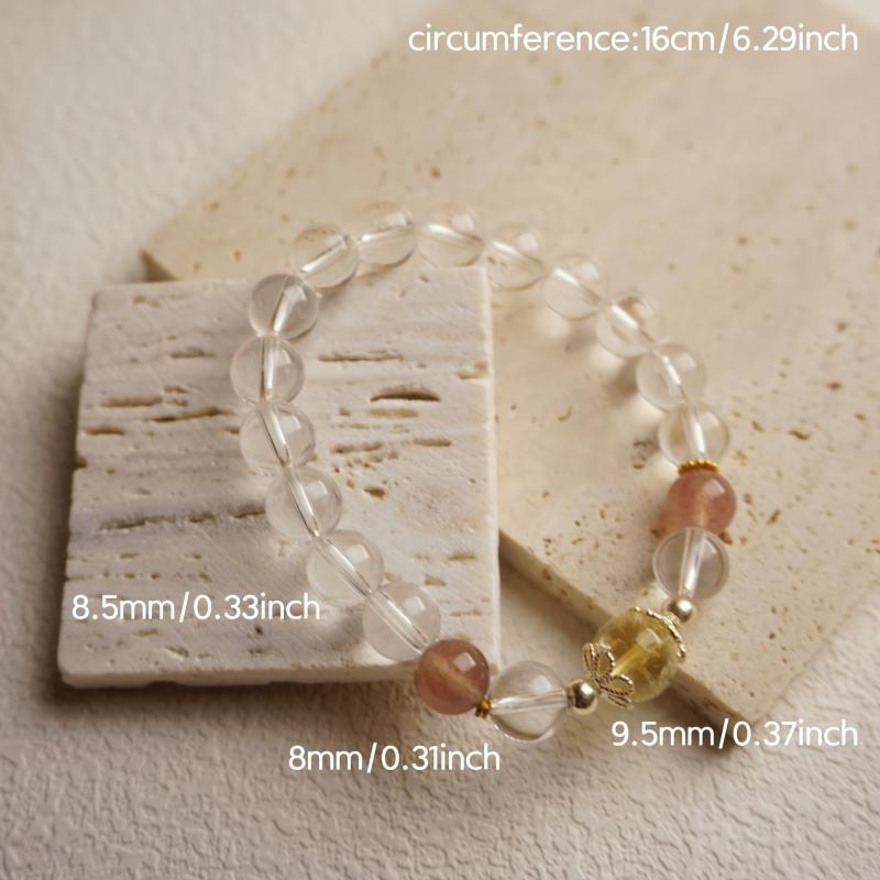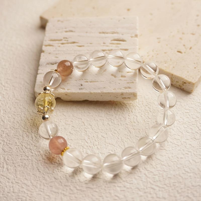 This handcrafted bracelet features a versatile design that combines the beauty of transparent quartz with a pastoral charm. A perfect choice for daily wear or special occasions.