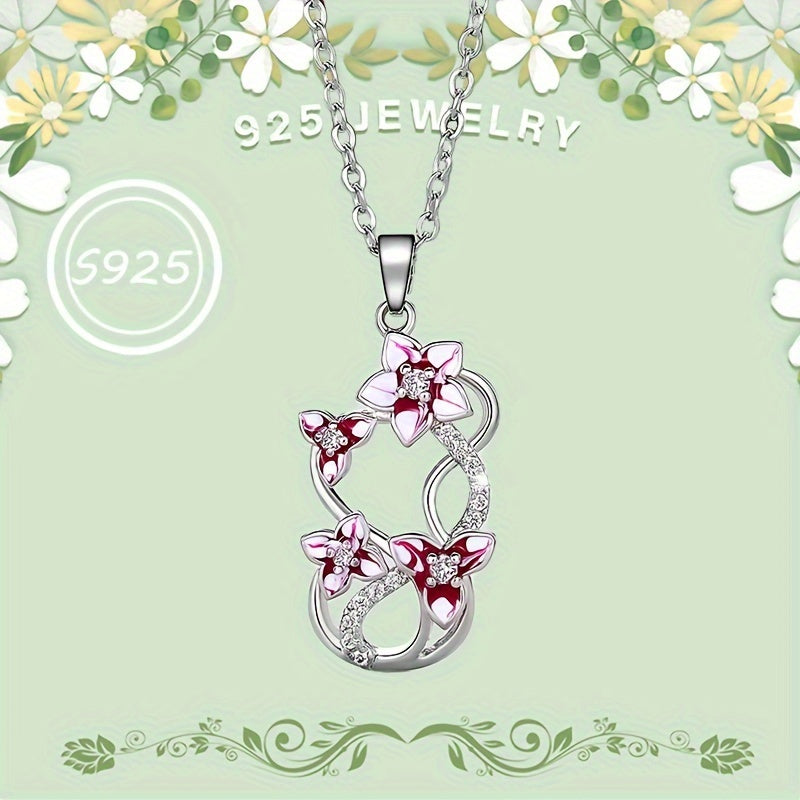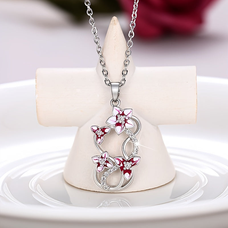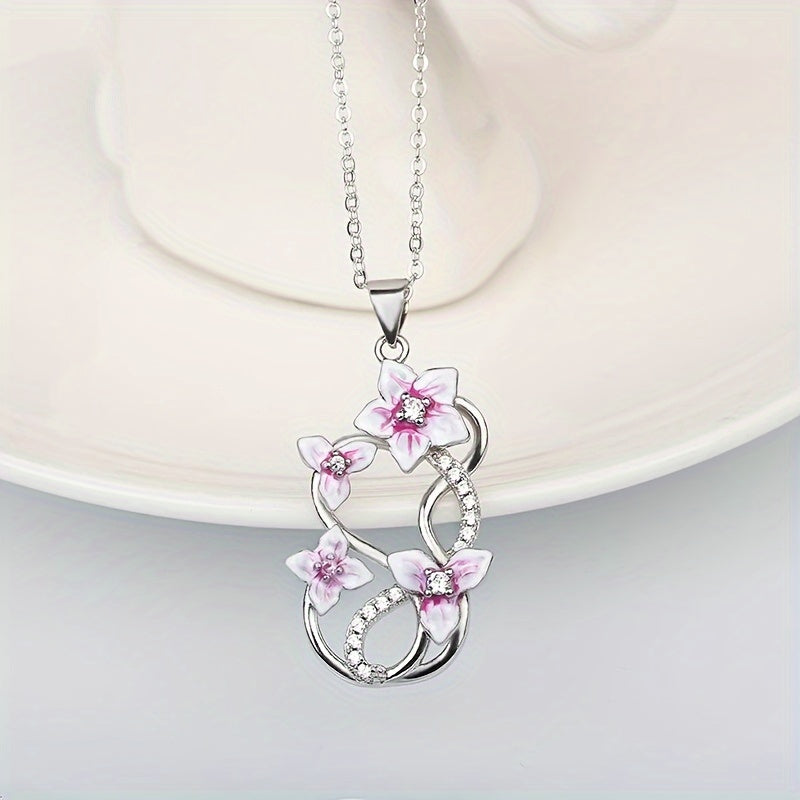 Delicate peach blossom pendant necklace that makes a lovely and sweet gift. The intricate design adds a touch of elegance to any outfit.