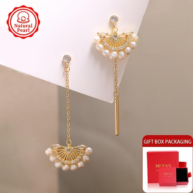 Elevate your style with these stunning pearl dangle earrings featuring 16 natural freshwater pearls of varying shapes and sizes. A must-have jewelry accessory for any occasion.
