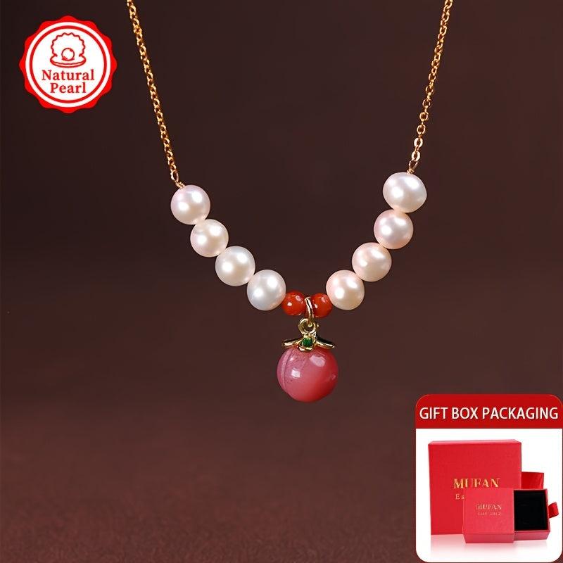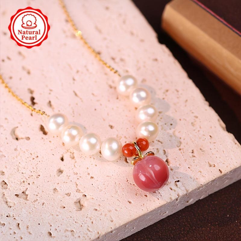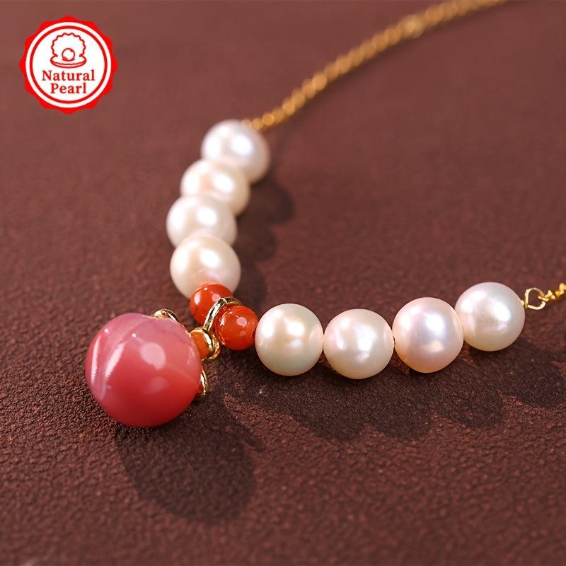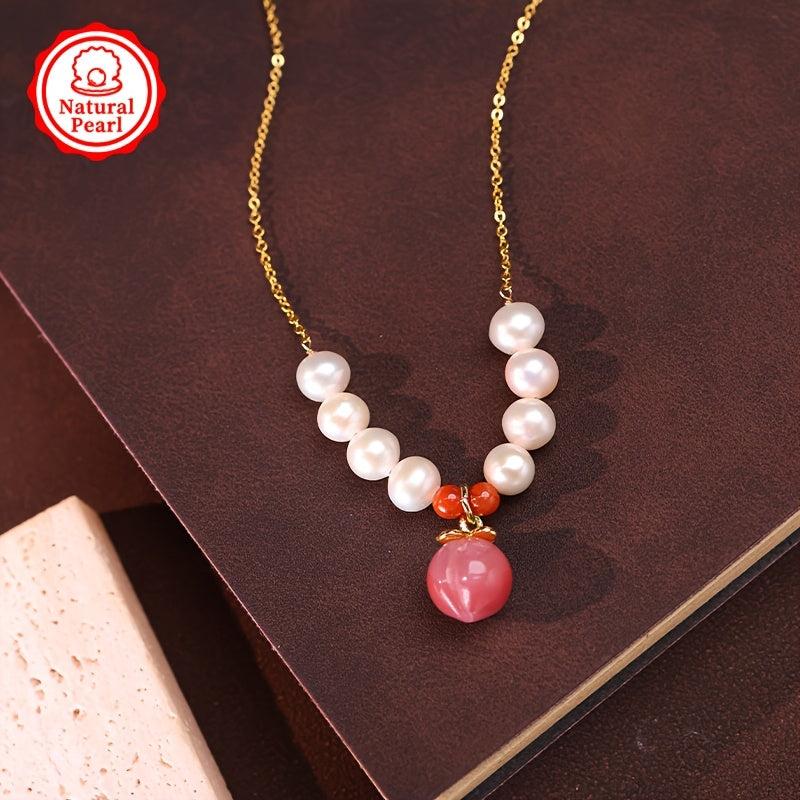 This beautiful necklace features pink and peach natural freshwater pearls. Each pearl is unique in shape and color, creating a one-of-a-kind piece.