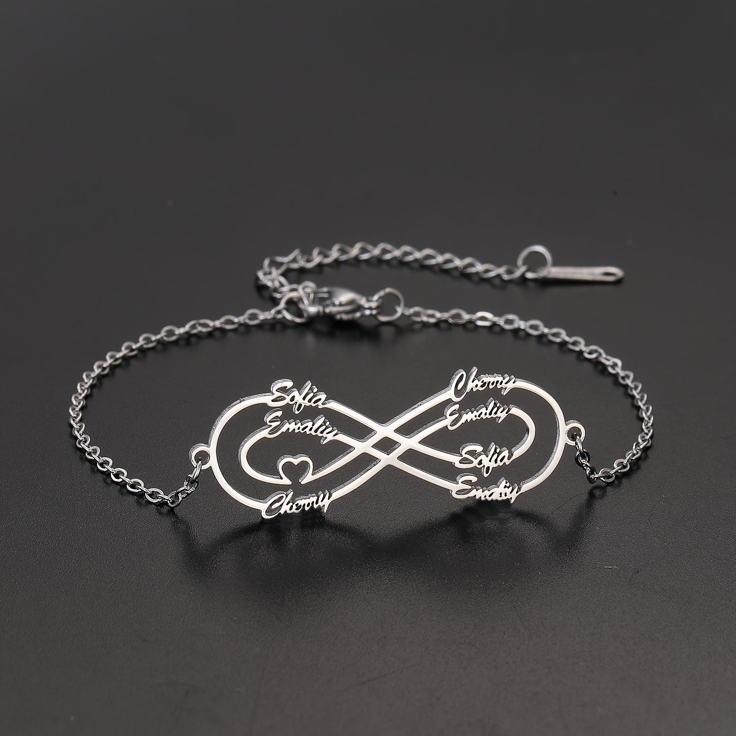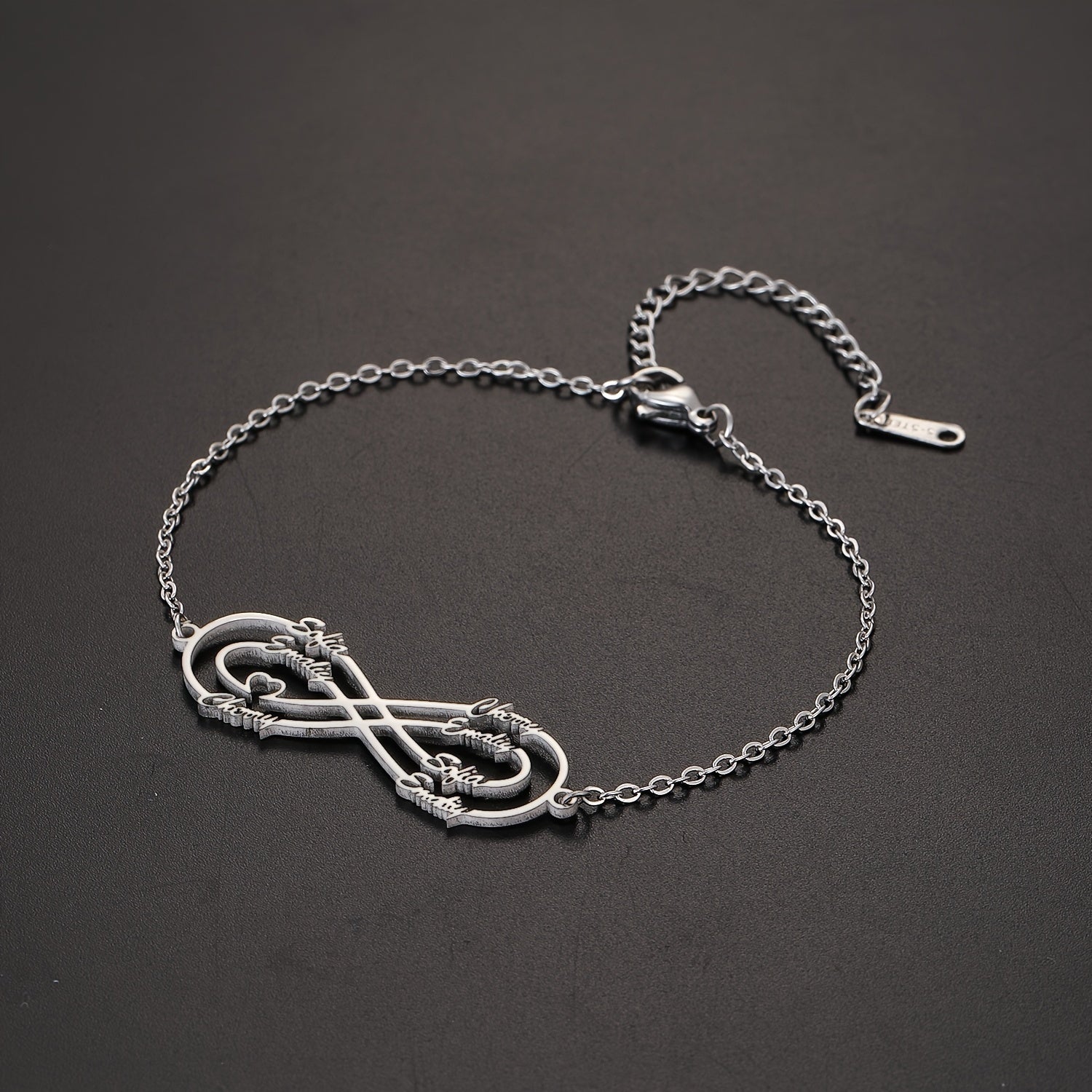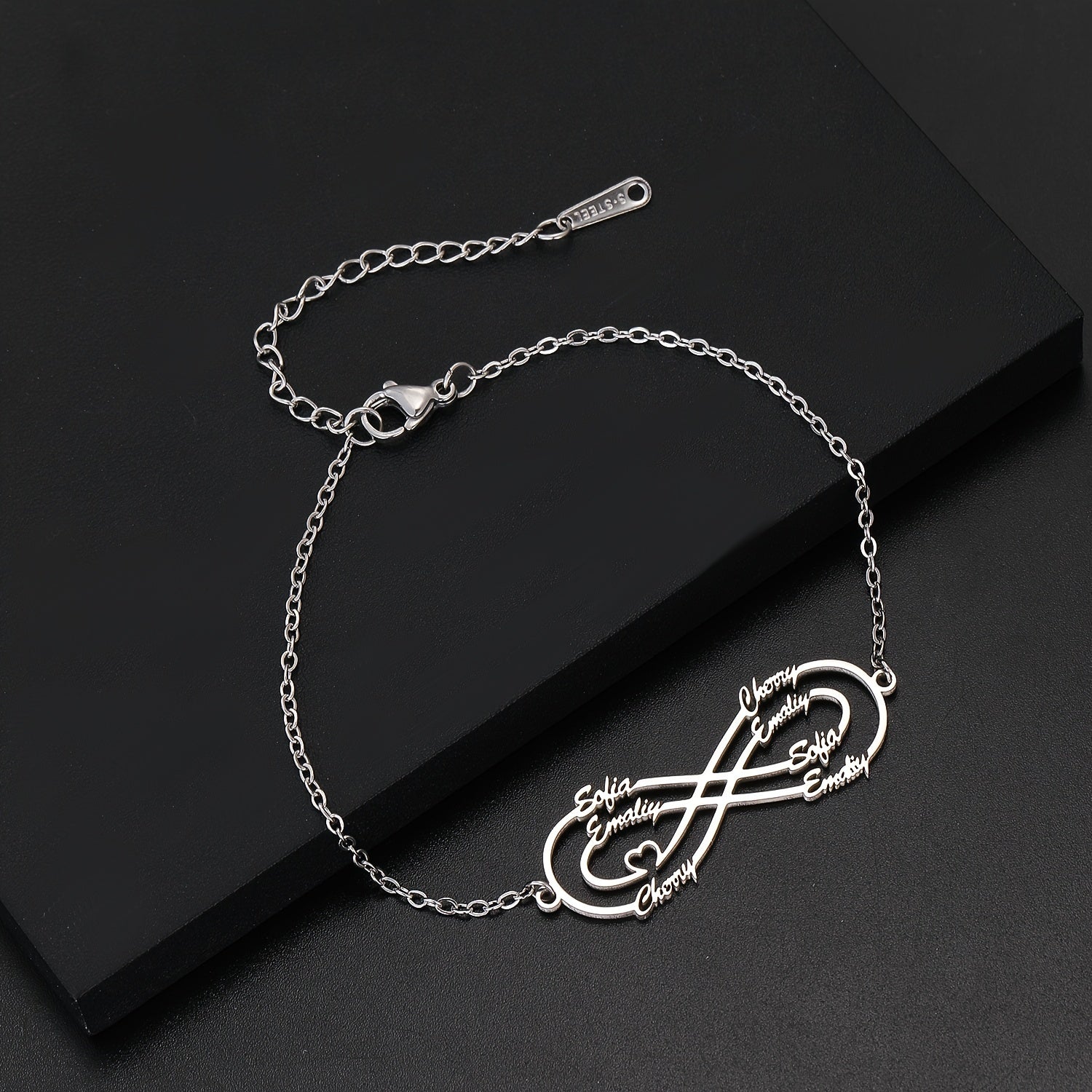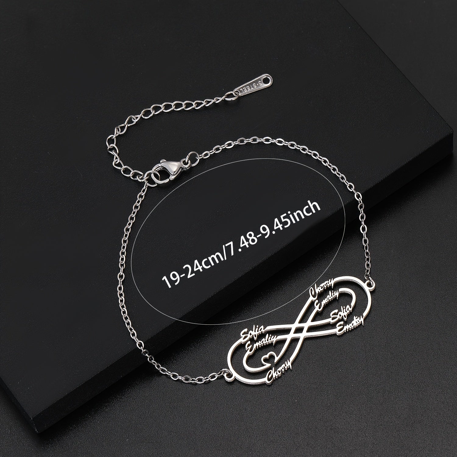 This adjustable bracelet is a perfect gift for moms, featuring 7 customizable names engraved on high-quality stainless steel.