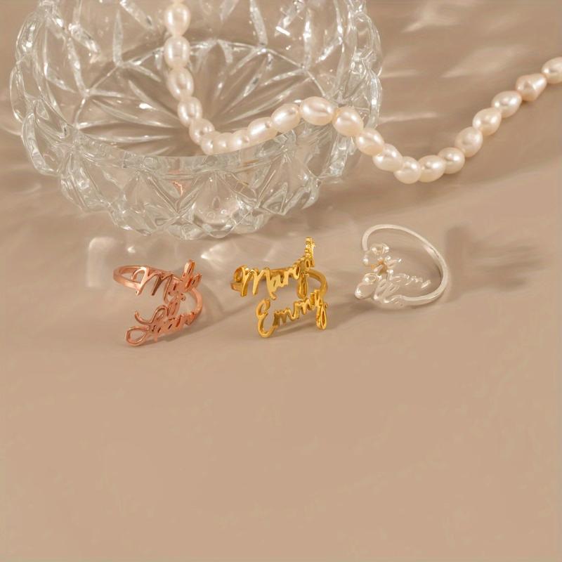 This custom adjustable ring is perfect for couples and weddings. Made of high-quality stainless steel, it features two names for a special touch.