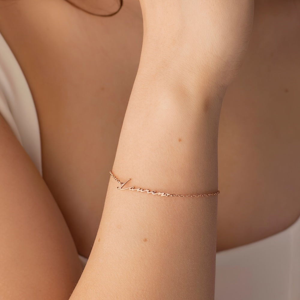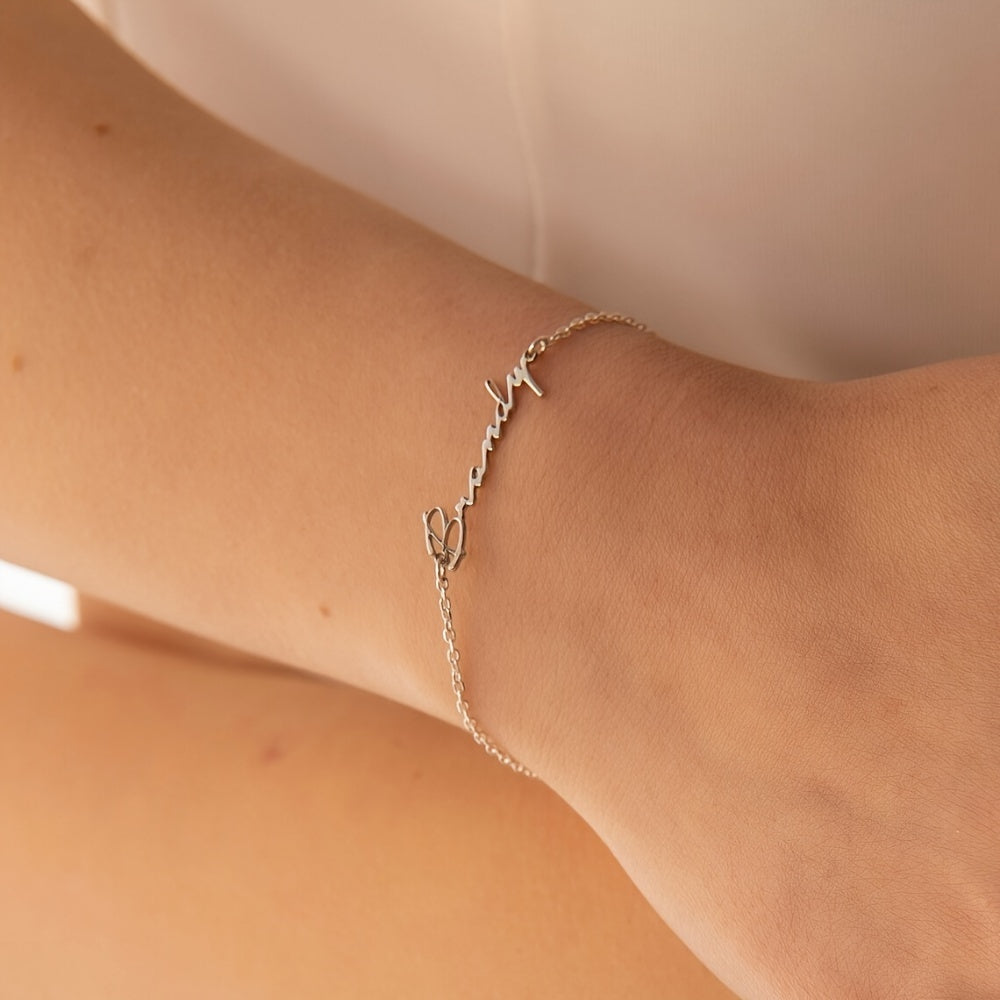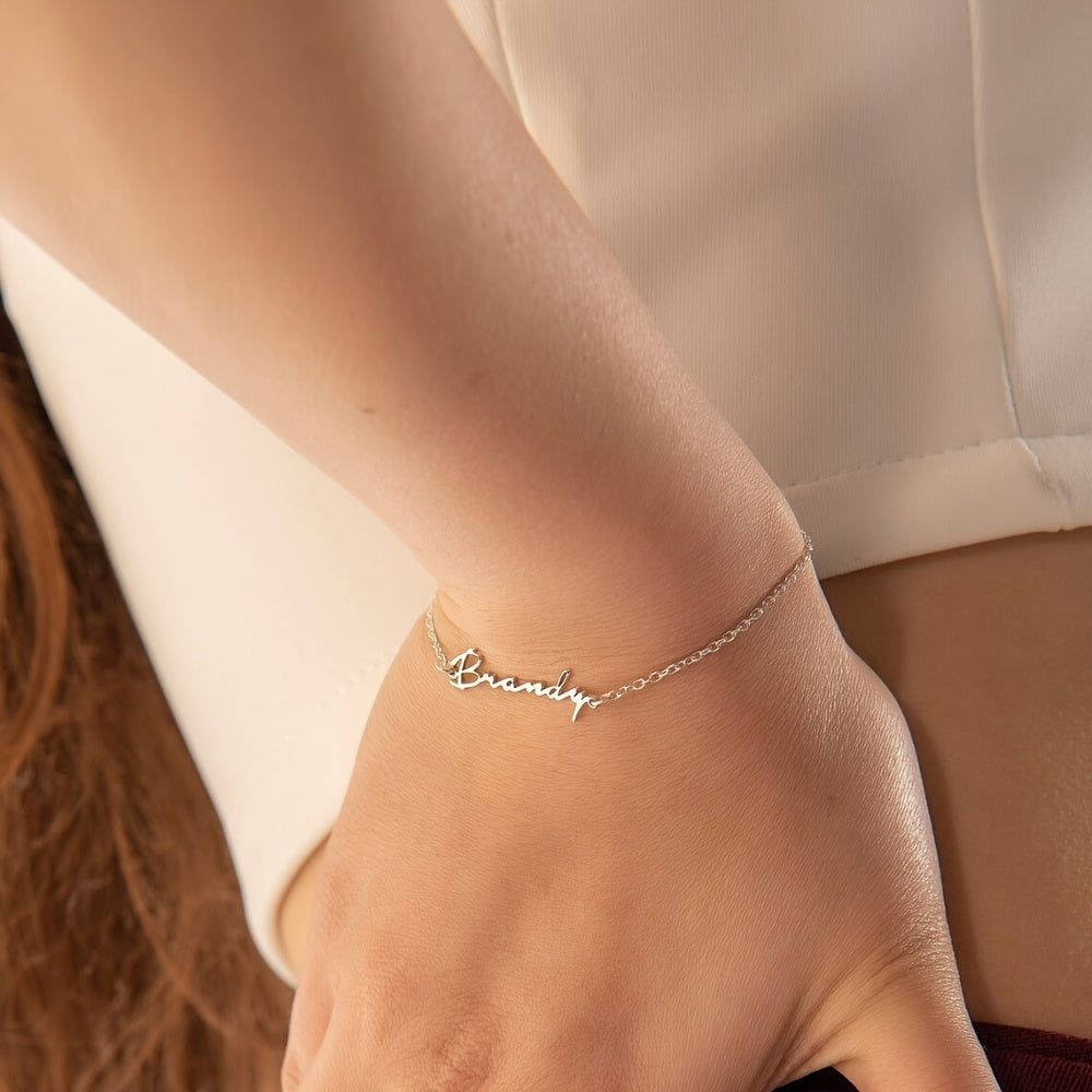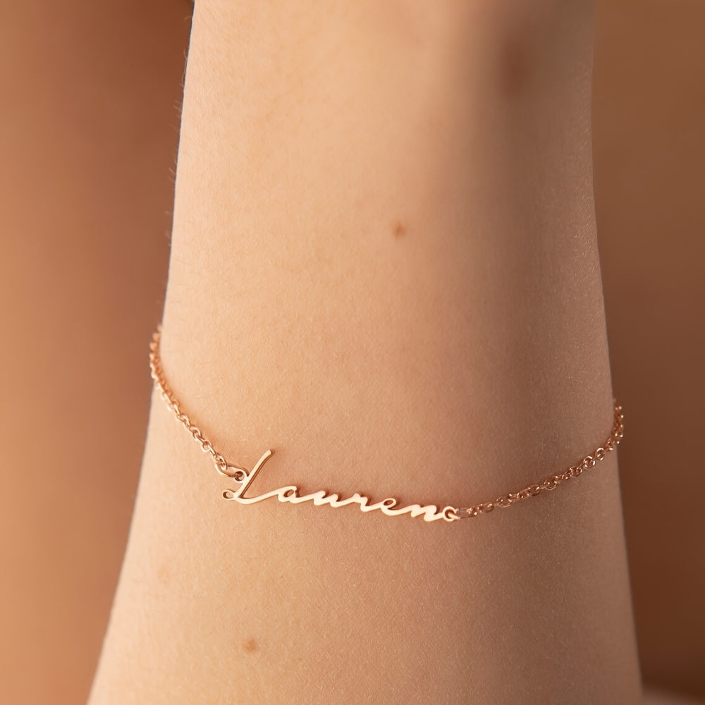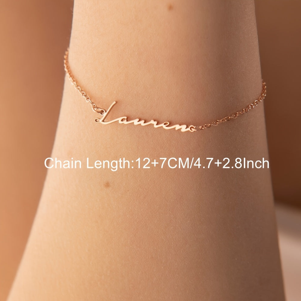 Elegant and stylish stainless steel charm bracelet with personalized nameplate, perfect for adding a personal touch to your wrist jewelry collection.