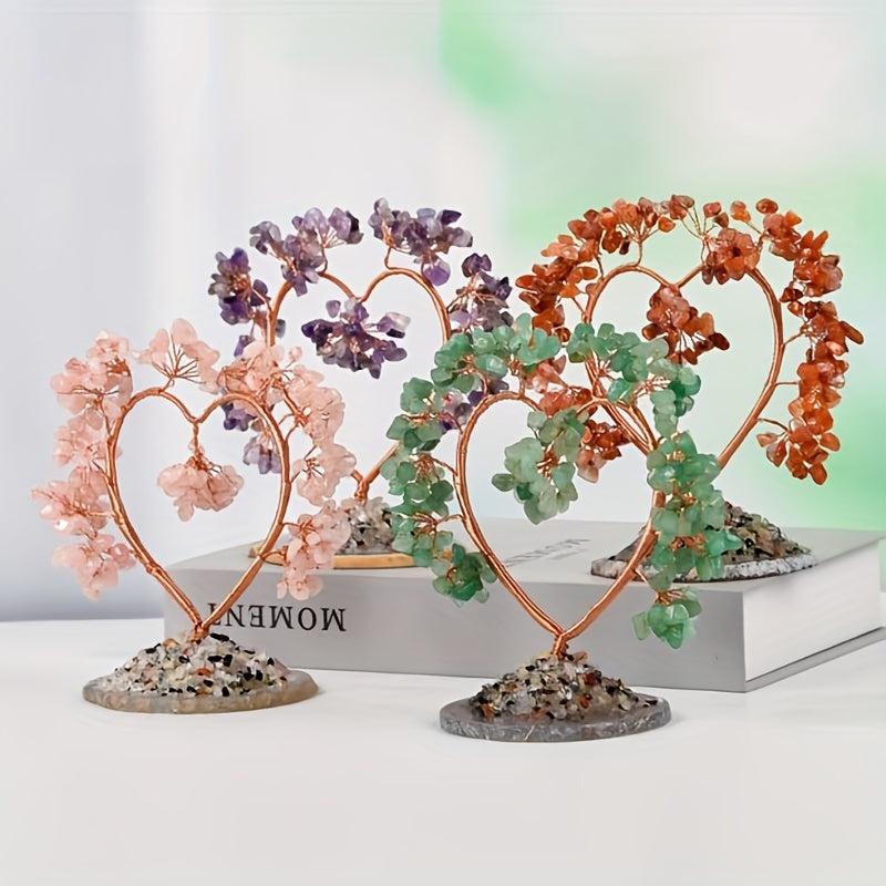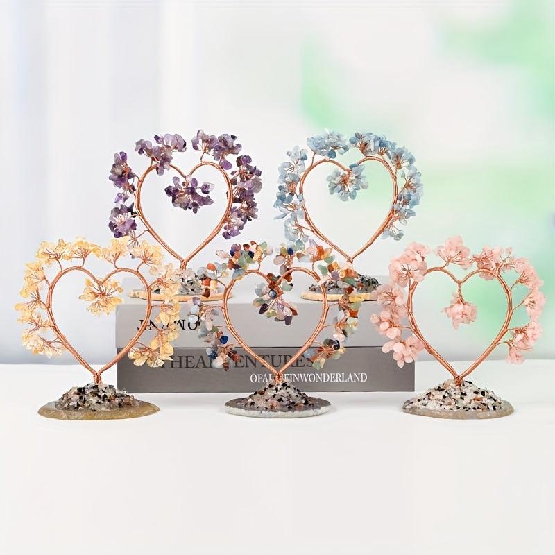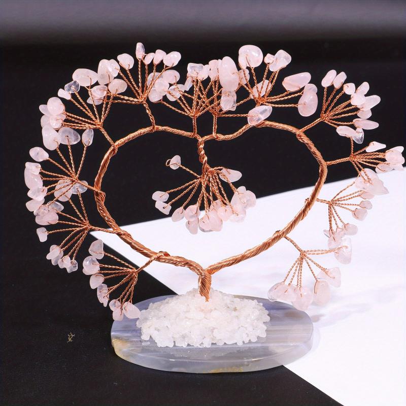 Enhance your space with this beautiful Pink Crystal Chakra Energy Love Tree. Made with natural amethyst and copper wire wrap on an agate slice base, it radiates positive energy and luck. A perfect healthy ornament for your home or office.